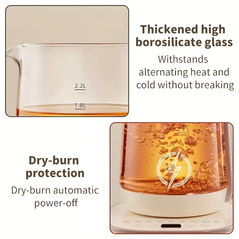 1.8L/60.87oz Immersion Electric Kettle | Health Kettle with 18 Functions, Thickened Glass,