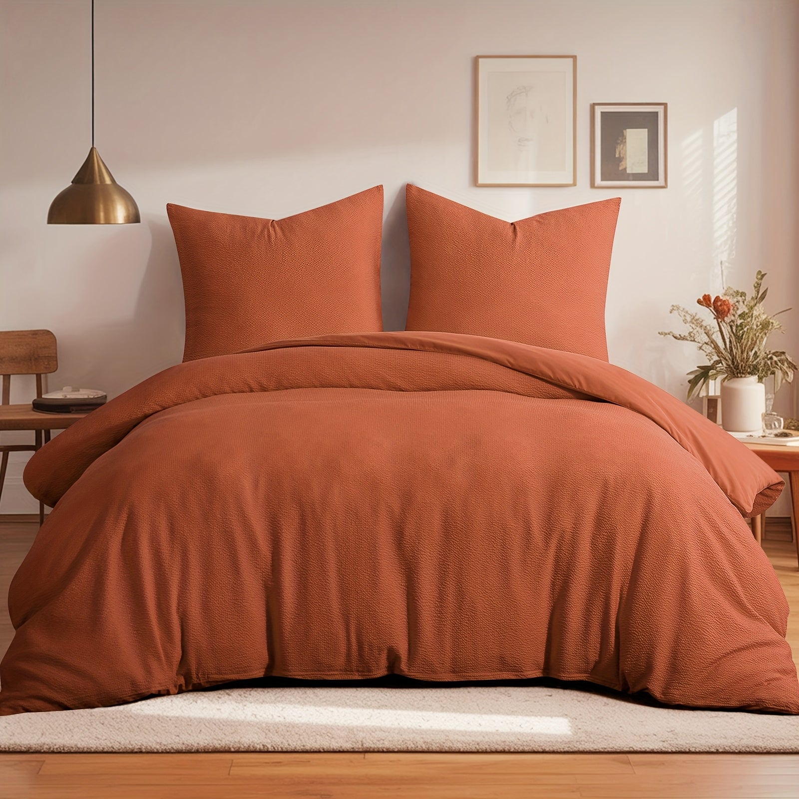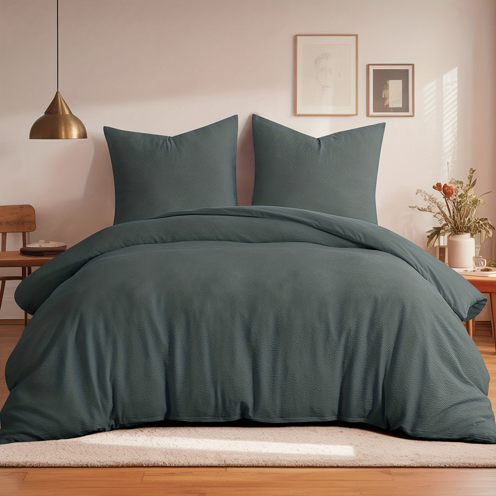 1 Set Seersucker Bed Set - King Size Duvet Cover & 2 Pillowcases (Queen Compatible)