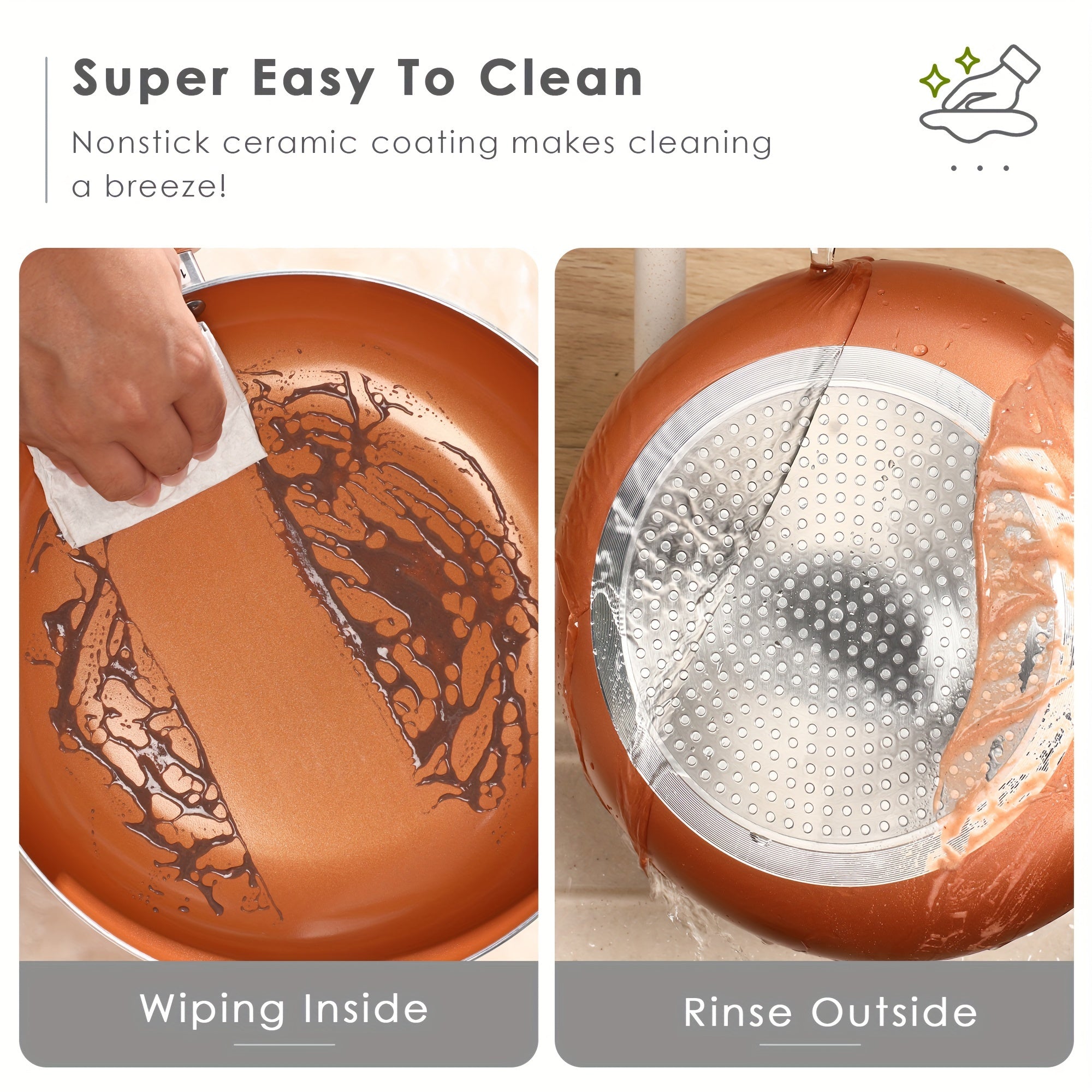 10pcs Copper Nonstick Cookware Set, Aluminum Induction Compatible Pots and Pans with Ceramic Coating,