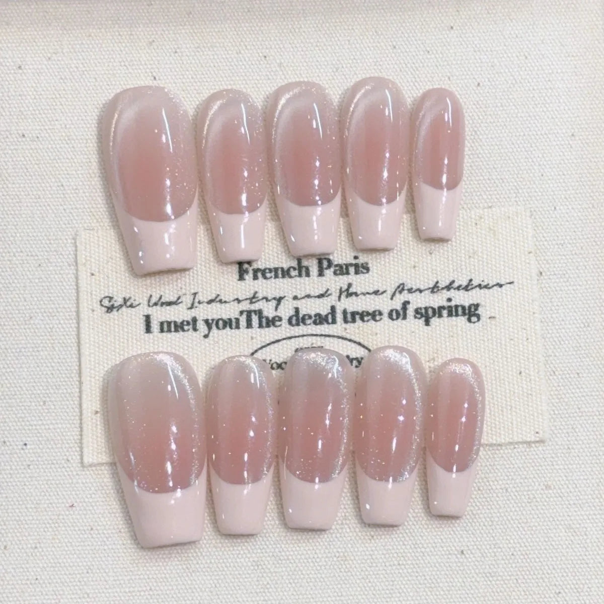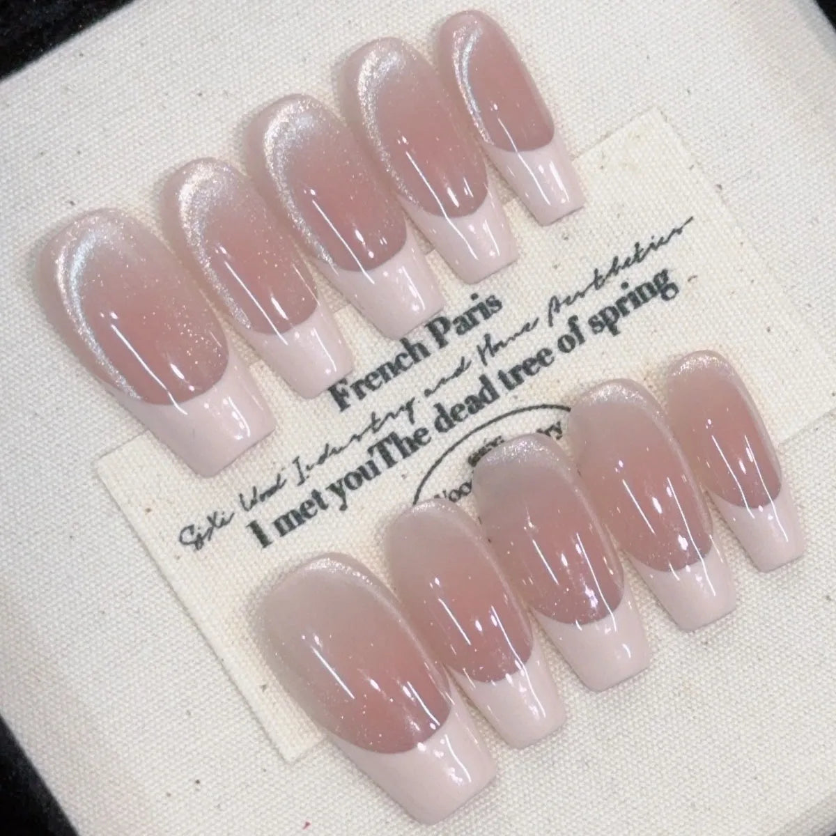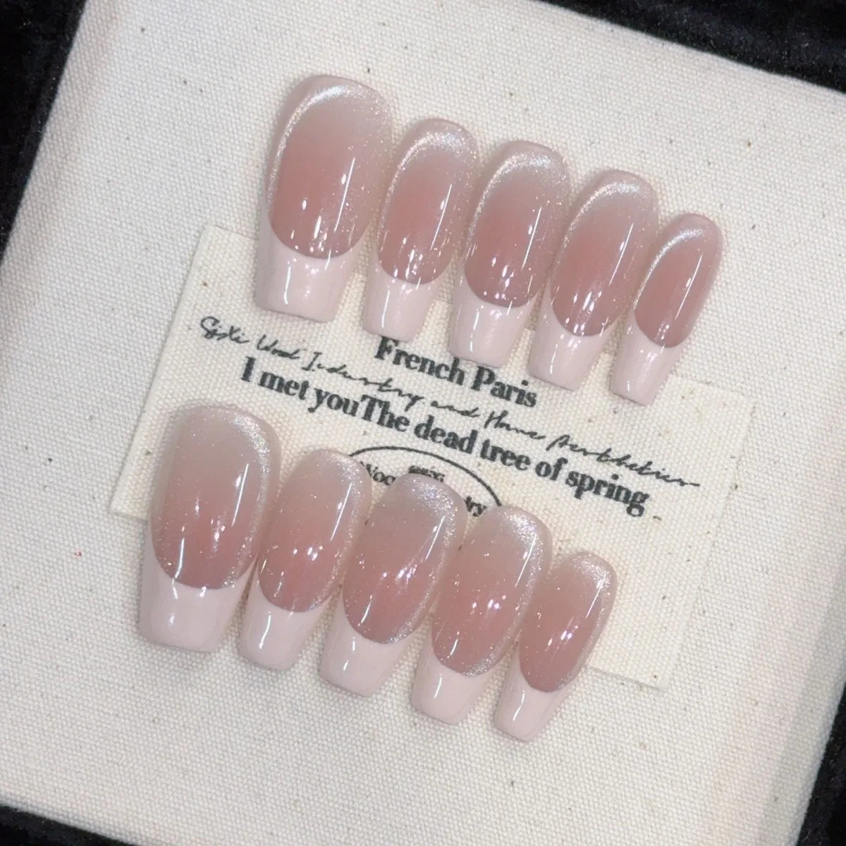 10pcs Handmade Press on Nails Medium-Length Ladder Pink Edge French