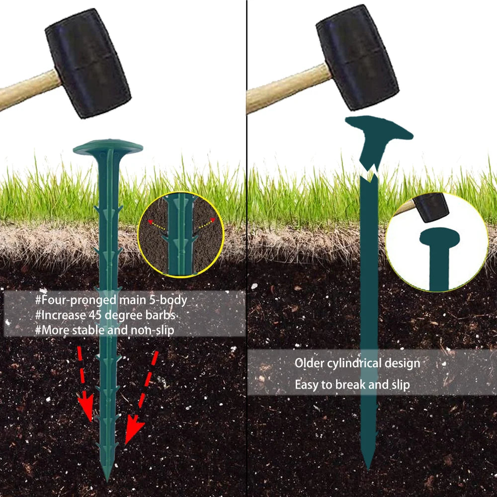 Garden nails can be used to Secure Weed Fabric barriers, Support Plants, artificial turf, Tarps, Landscape Fabric, camping tents & More!