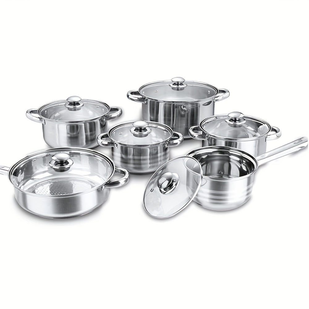 12-Piece Stainless Steel Pots and Pans Set Heavy-Duty, Food-Grade, Multipurpose Stockpot