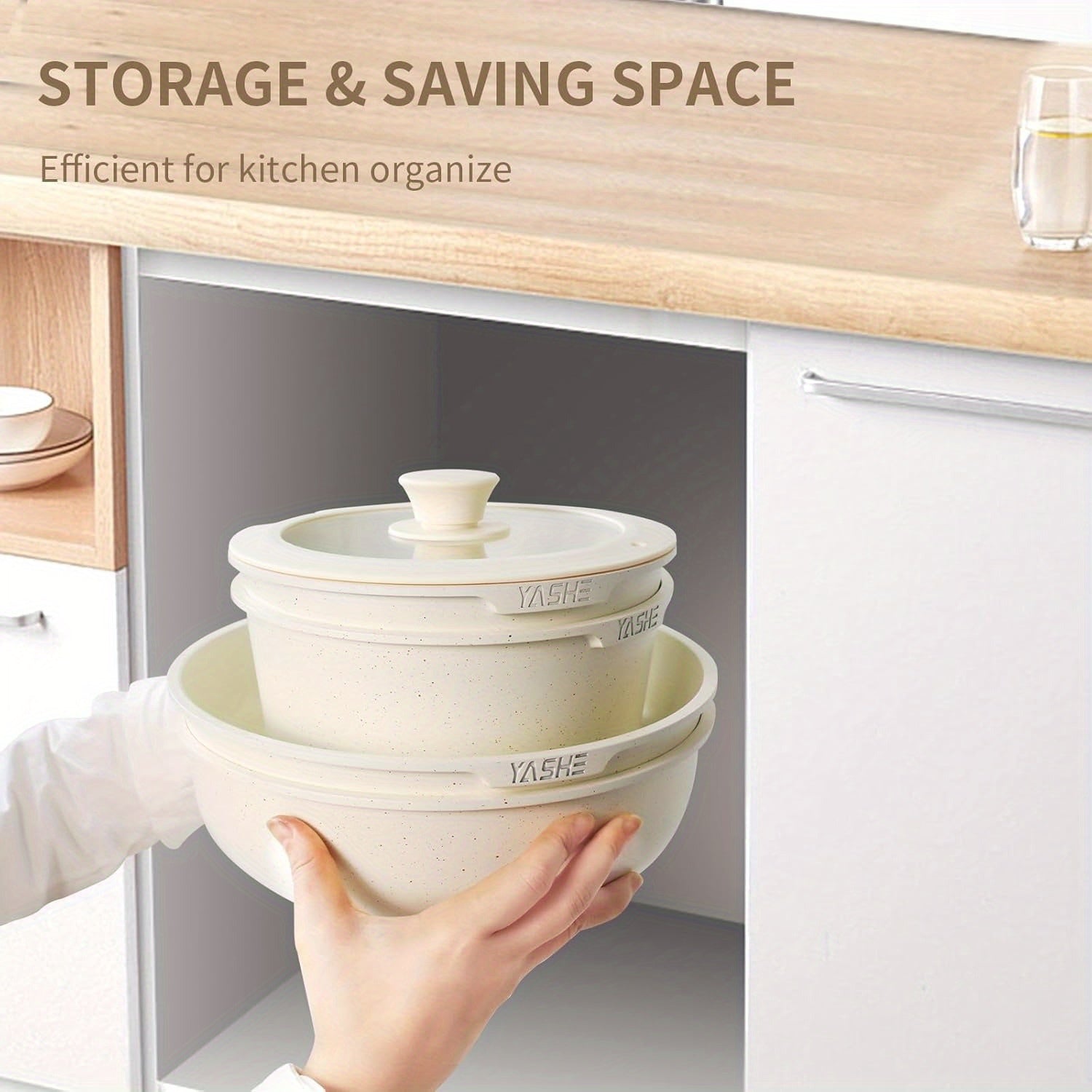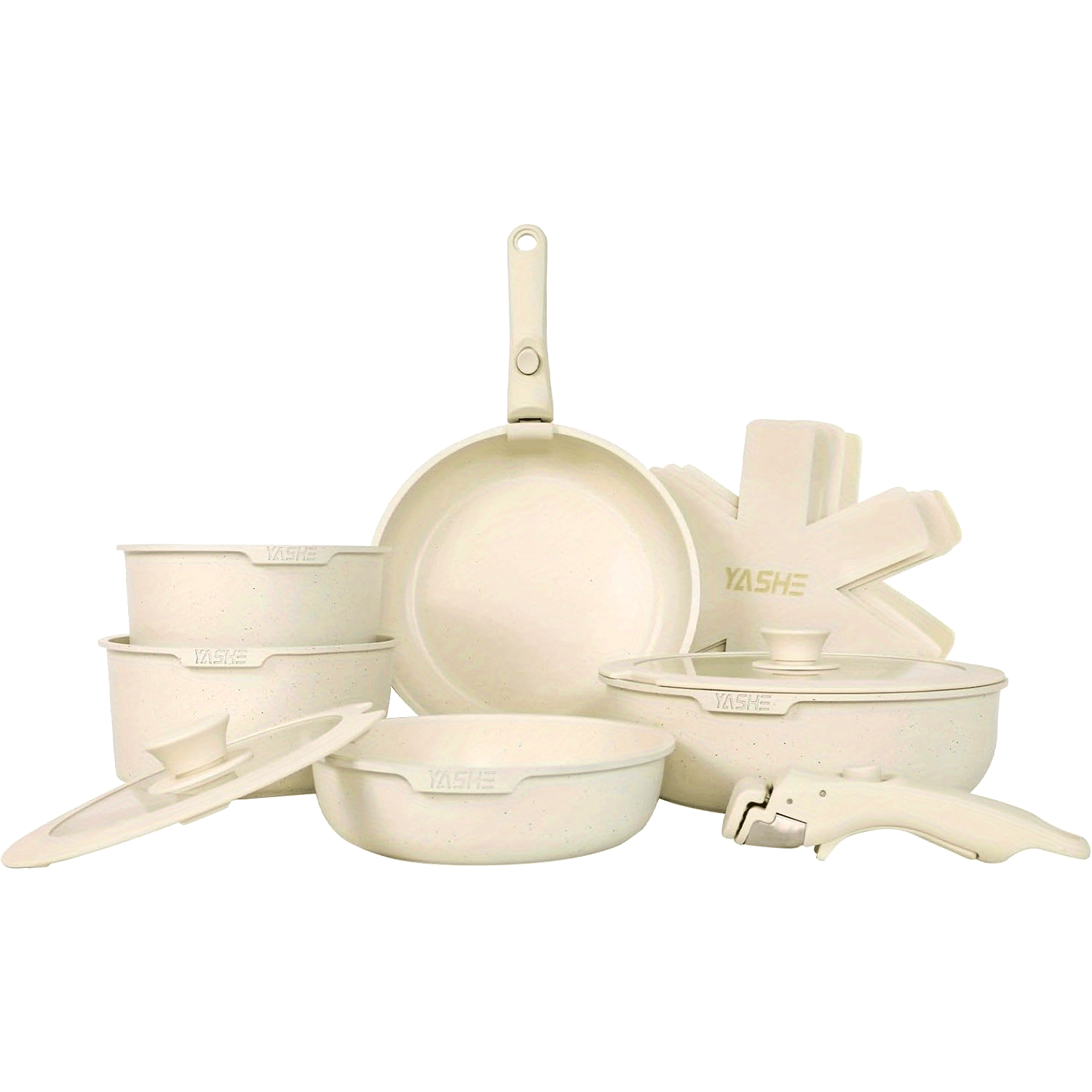 13-Piece Ceramic Kitchen Cookware Set, Detachable Dandle Pots and Pans with Pan Protectors,