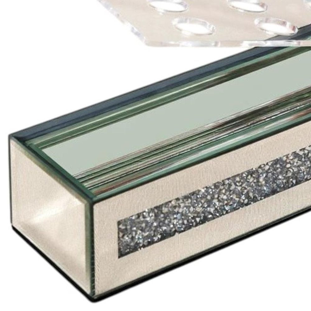 13" Silver Crystal And Mirrored Glass Table Vase With Crystals