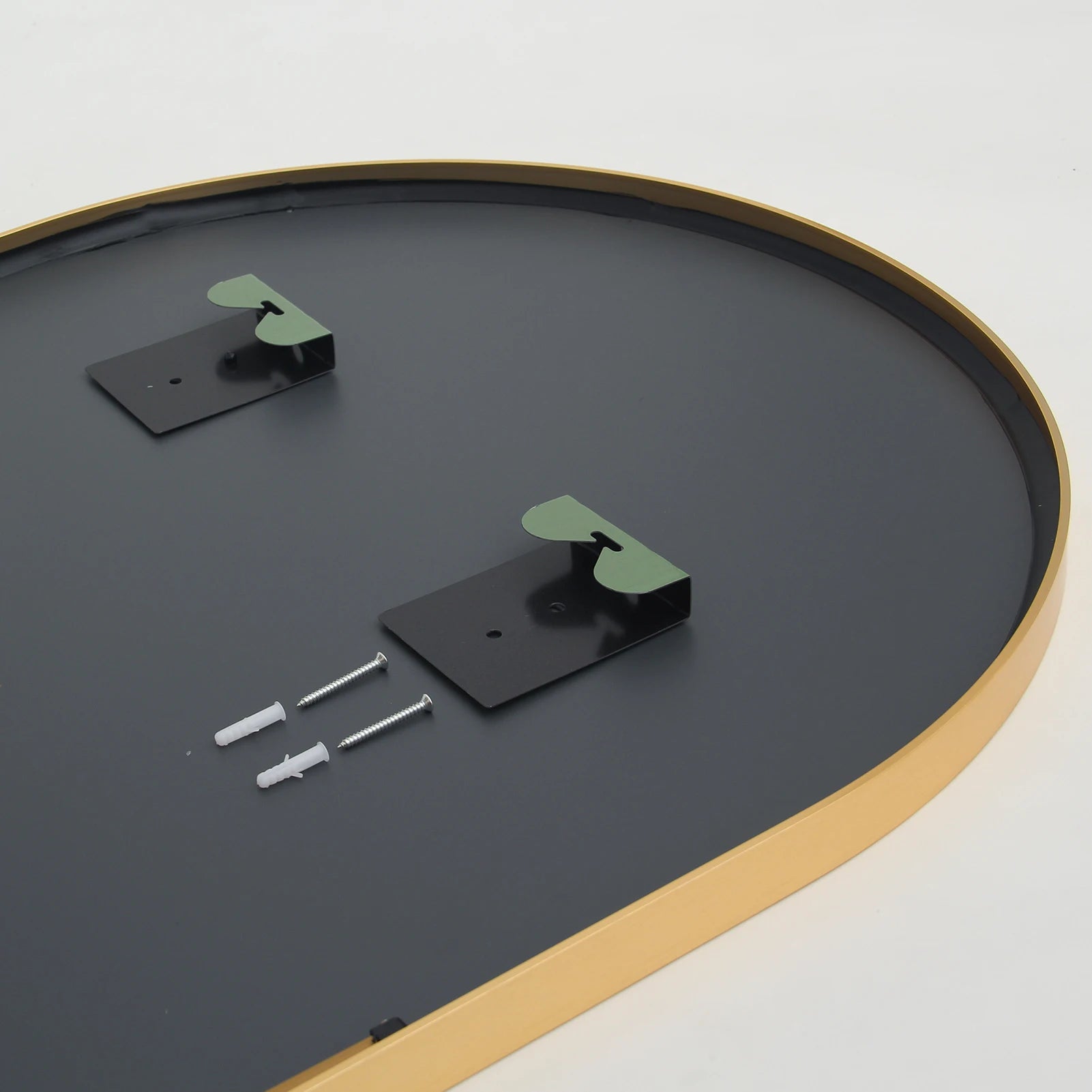165x60cm Full Length Mirror, Curved Standing Mirror with Hooks, Floor Mirror with Tempered Glass and Aluminum Alloy Frame, Gold