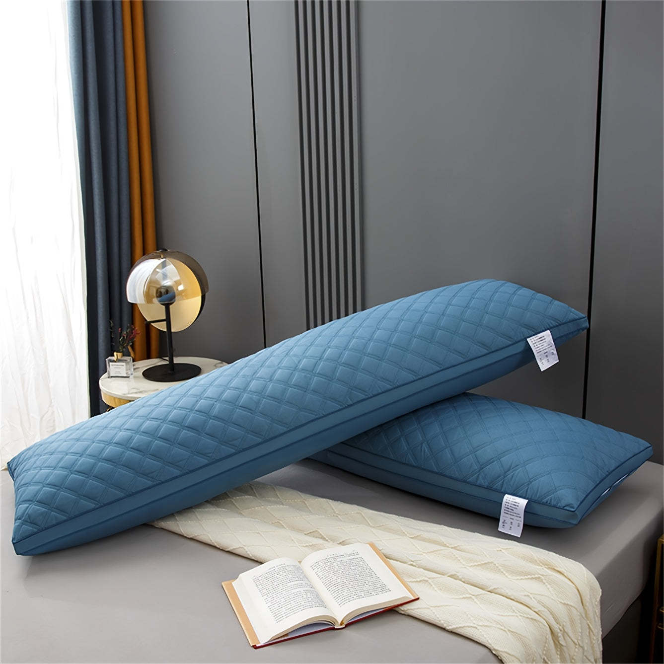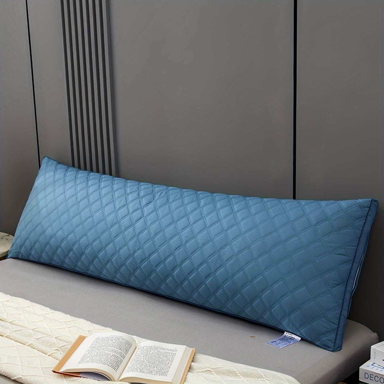 1pc Blue Luxury Quilted Body Pillow - Soft 3-Line Embossed Design, Machine Washable, Multiple Sizes