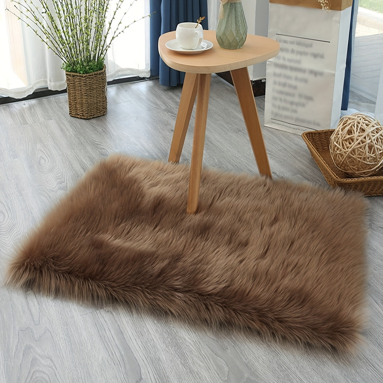 1pc Coffee Brown Faux Fur Plush Area Mat - Soft, Non-Slip,