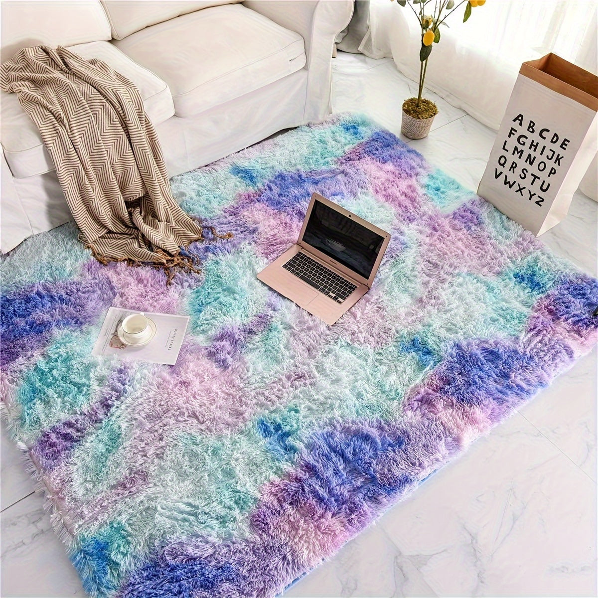 1pc Colorful Tie-dye Area Rug, Dry Cleaning Lounge Mat, Fluffy Decorative Throw Carpet,
