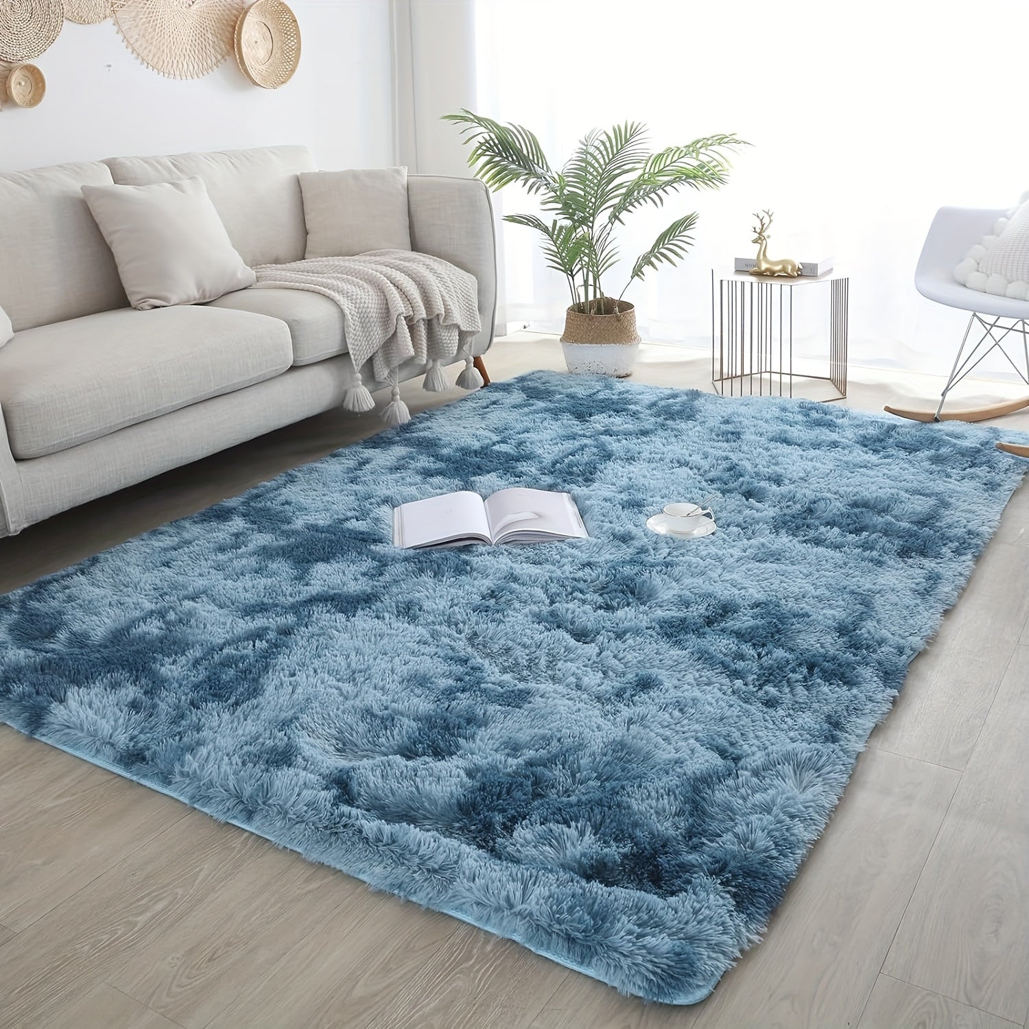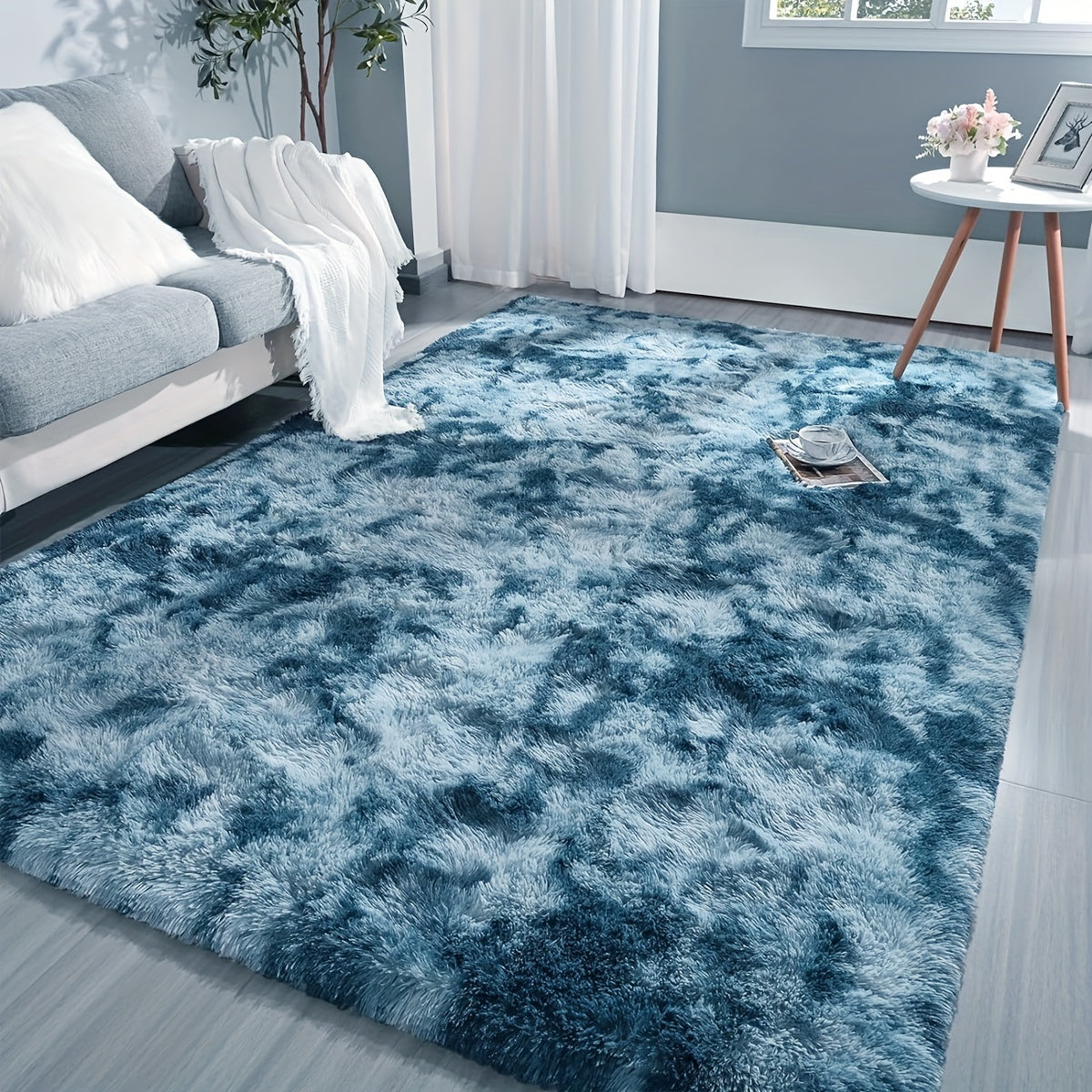 1pc Cozy Gradient Ombre Blue Shaggy Area Rug, Soft Thick Plush Faux Fur Carpet,