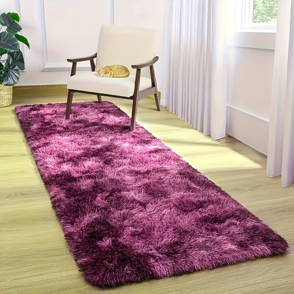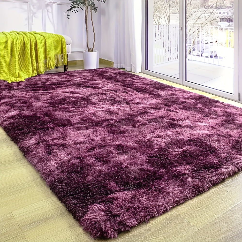 1pc, Dark Purple Tie-Dye Fluffy Area Rug, Soft Polyester 100% Lightweight Rectangle Carpet