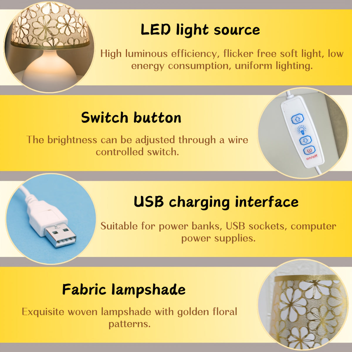 1pc Elegant Modern Nordic-Style Golden Floral Table Lamp with USB Power, Soft Eye-Caring Light