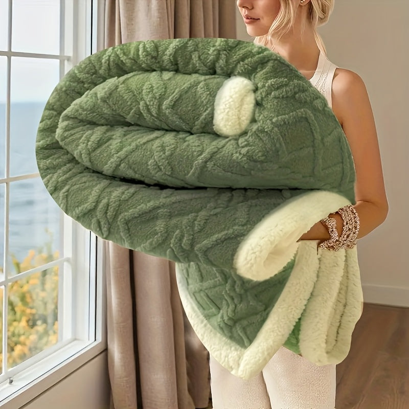 1pc Extra Large Luxury Lamb Wool Blanket Super Soft Plush Bedspread, All-Season Couch Cover, Green & 3D Texture