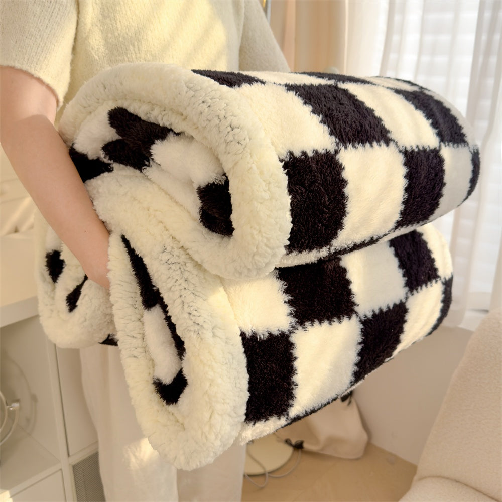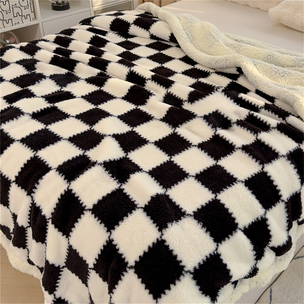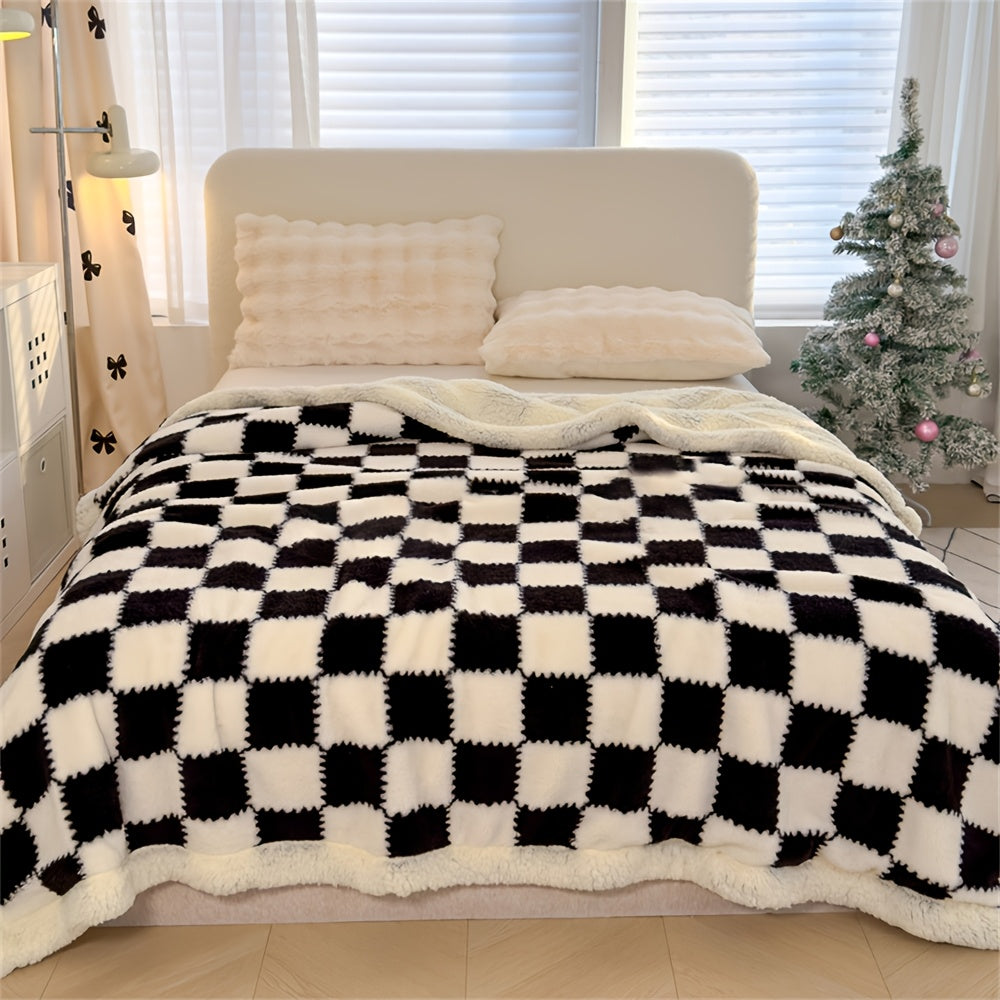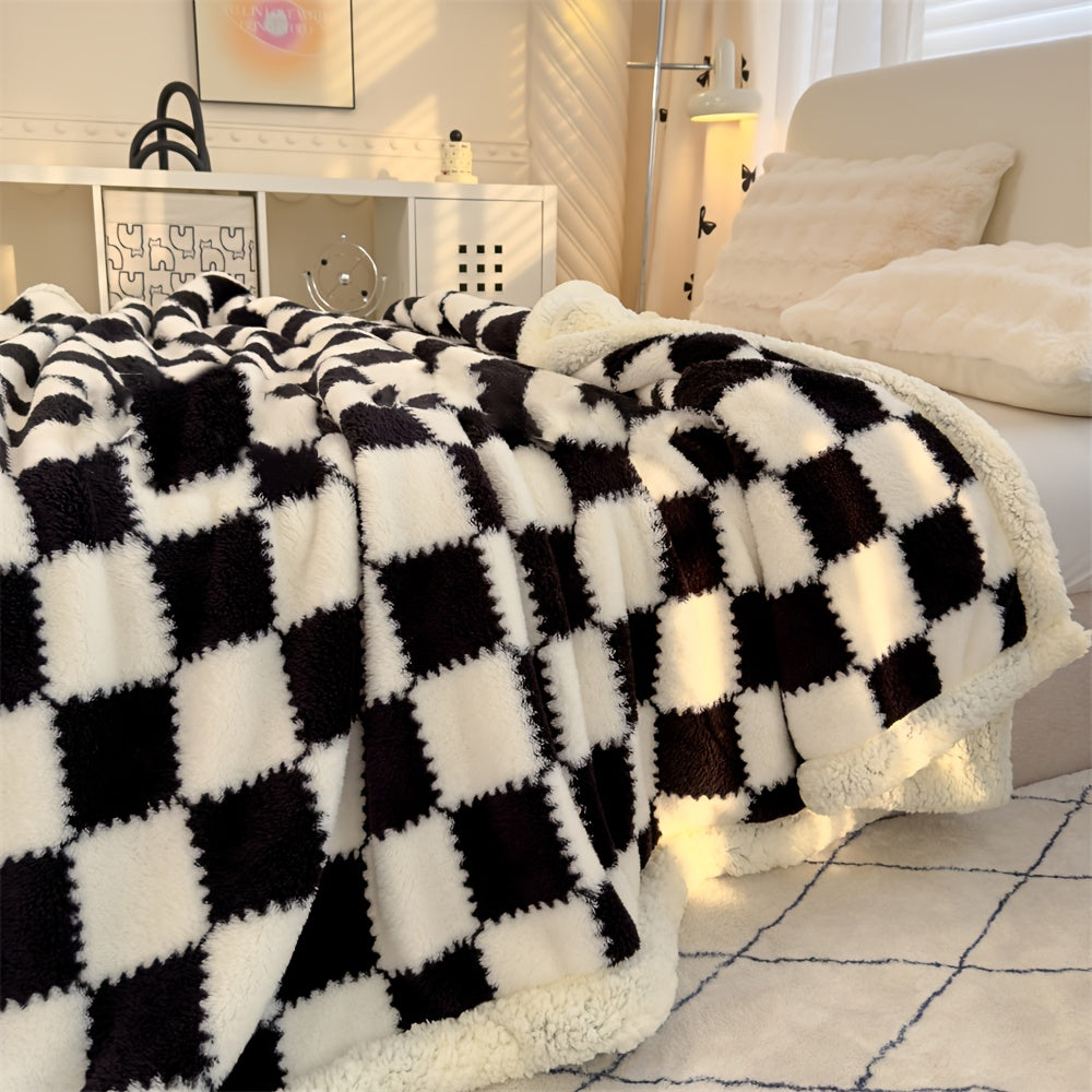 1pc Extra Thick Plaid Blanket - Brown/Beige/White/Black Checkered Bedspread