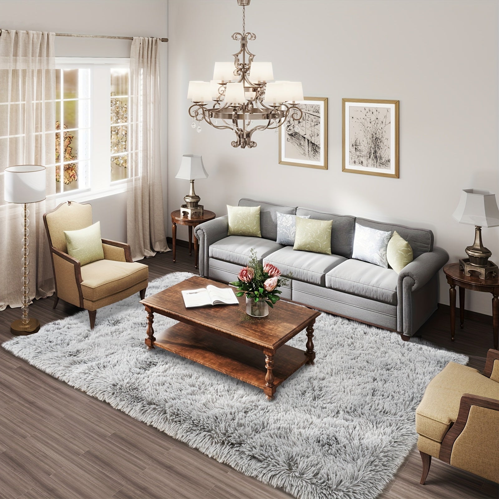 1pc Large Light Gray Mat Suitable for - Non-Slip Soft Fluffy with Rubber Backing,