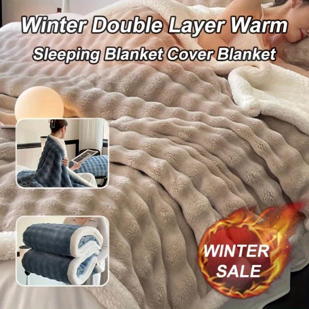1pc Large Size Double Layer Thickened Blanket/Quilt for Winter Bed Faux Rabbit Fur Flannel Blanket