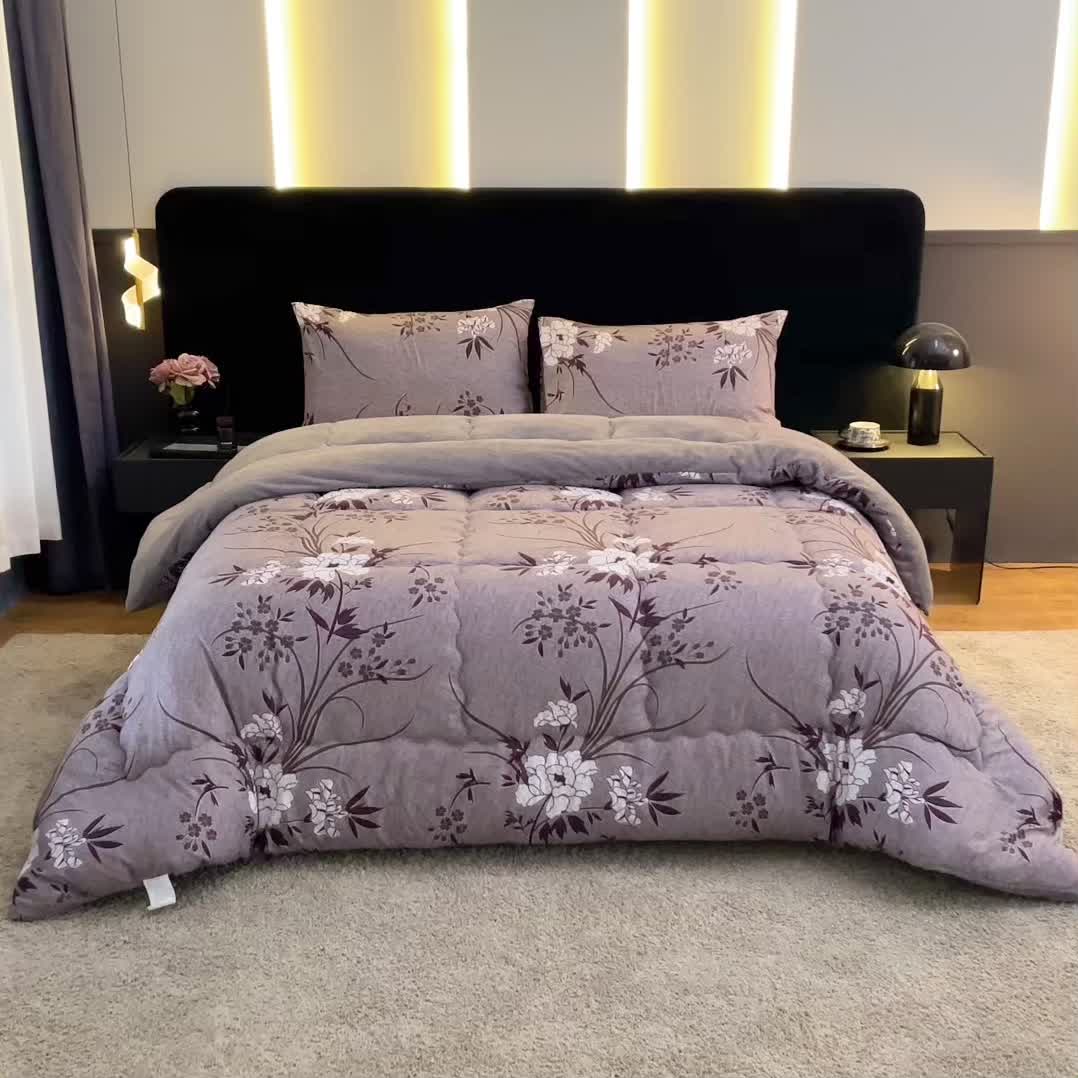 1pc Luxury Dark Grey Purple Floral Bedspread