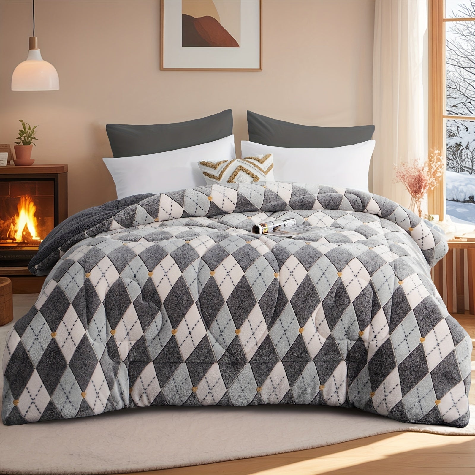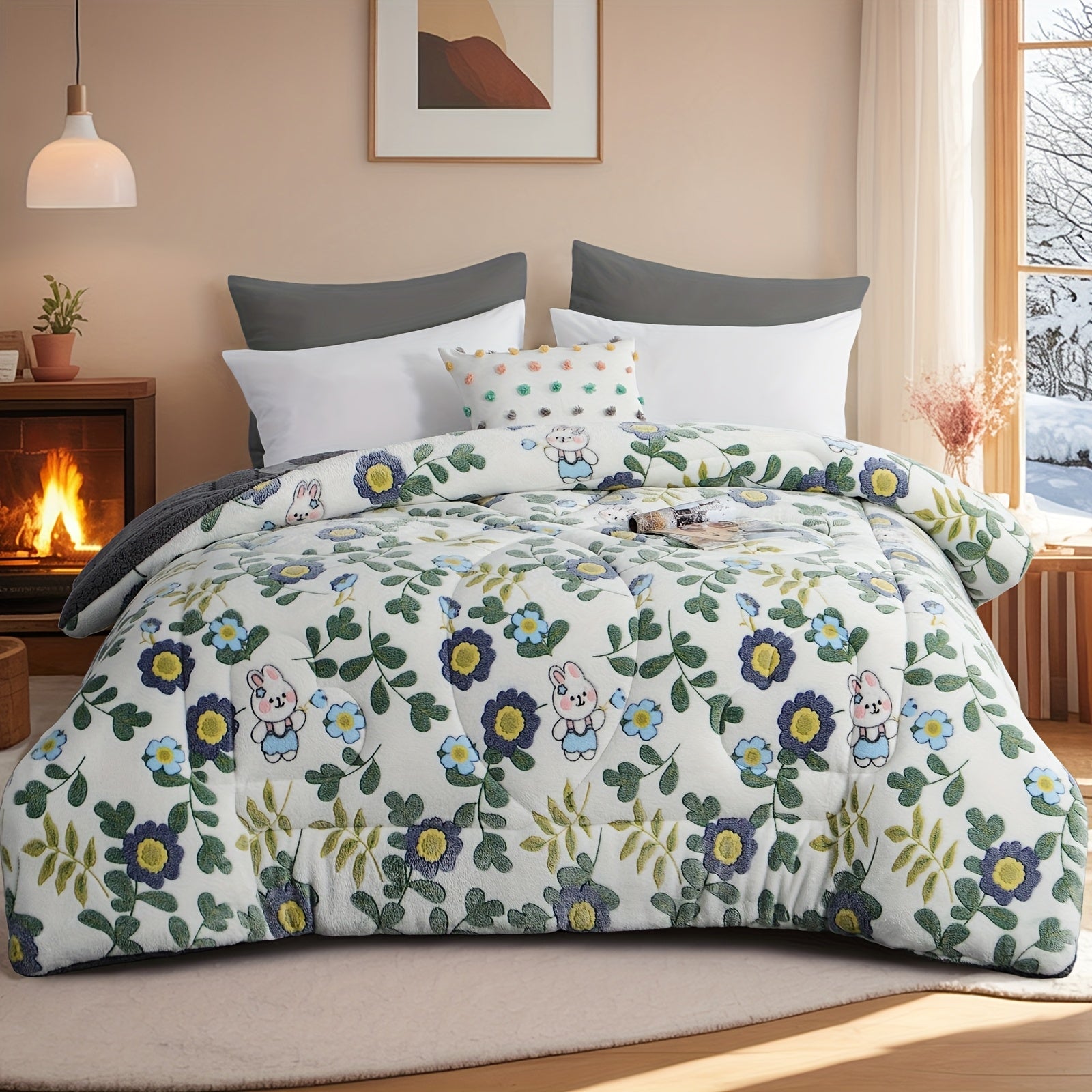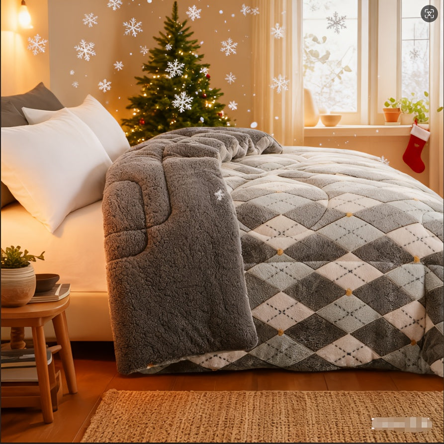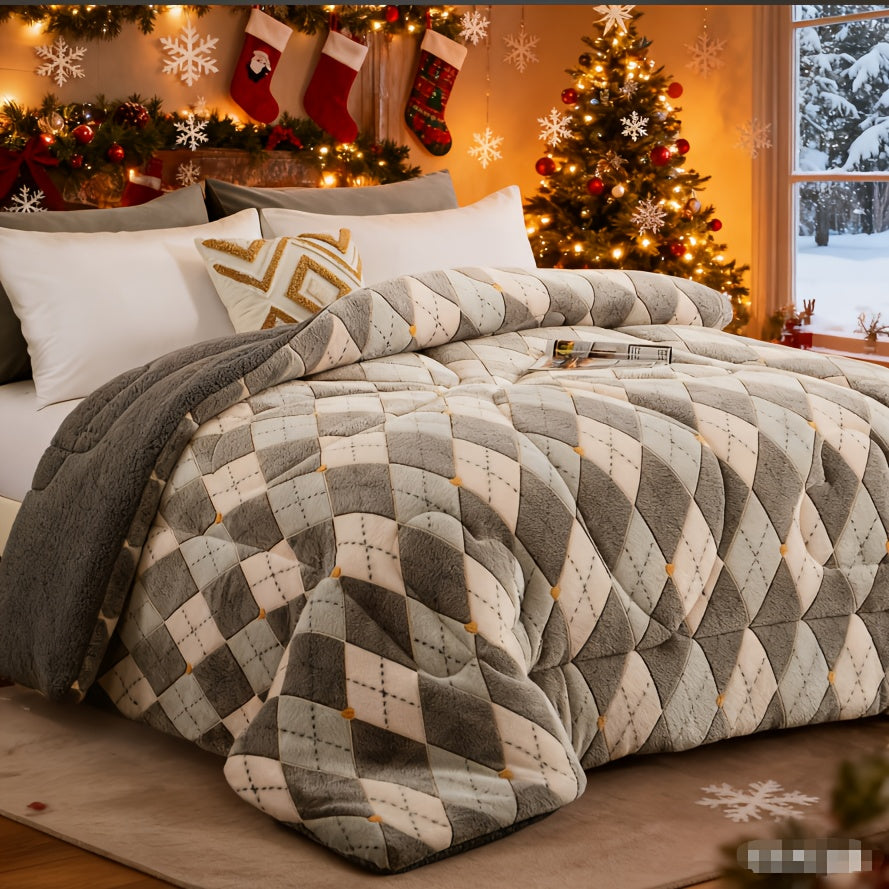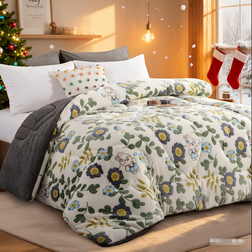 1pc Luxury Double-Sided Winter Quilt, Floral and Geometric Design, Quilting Process,