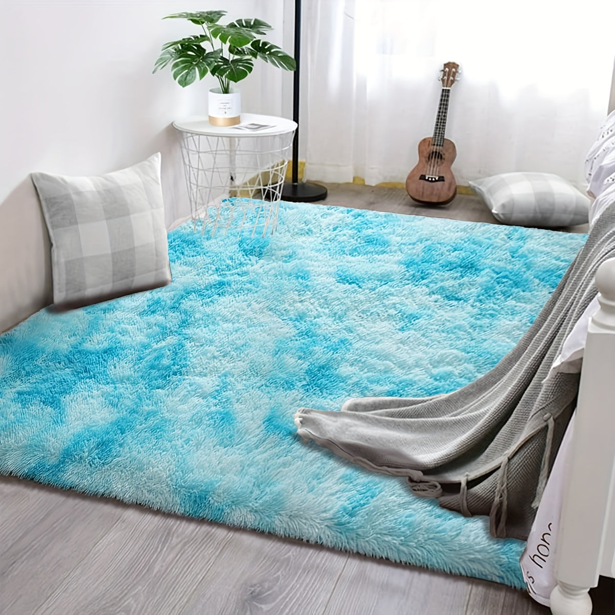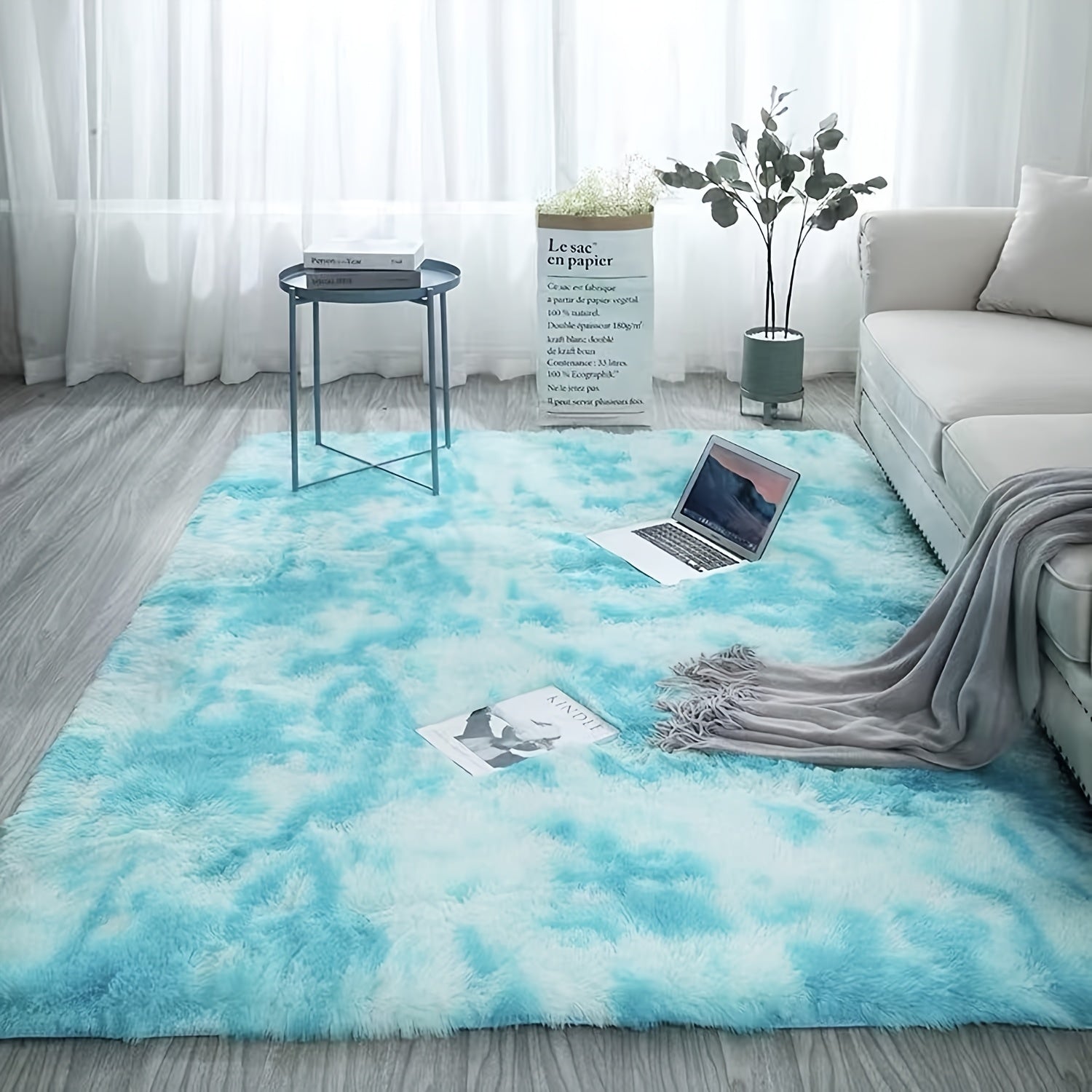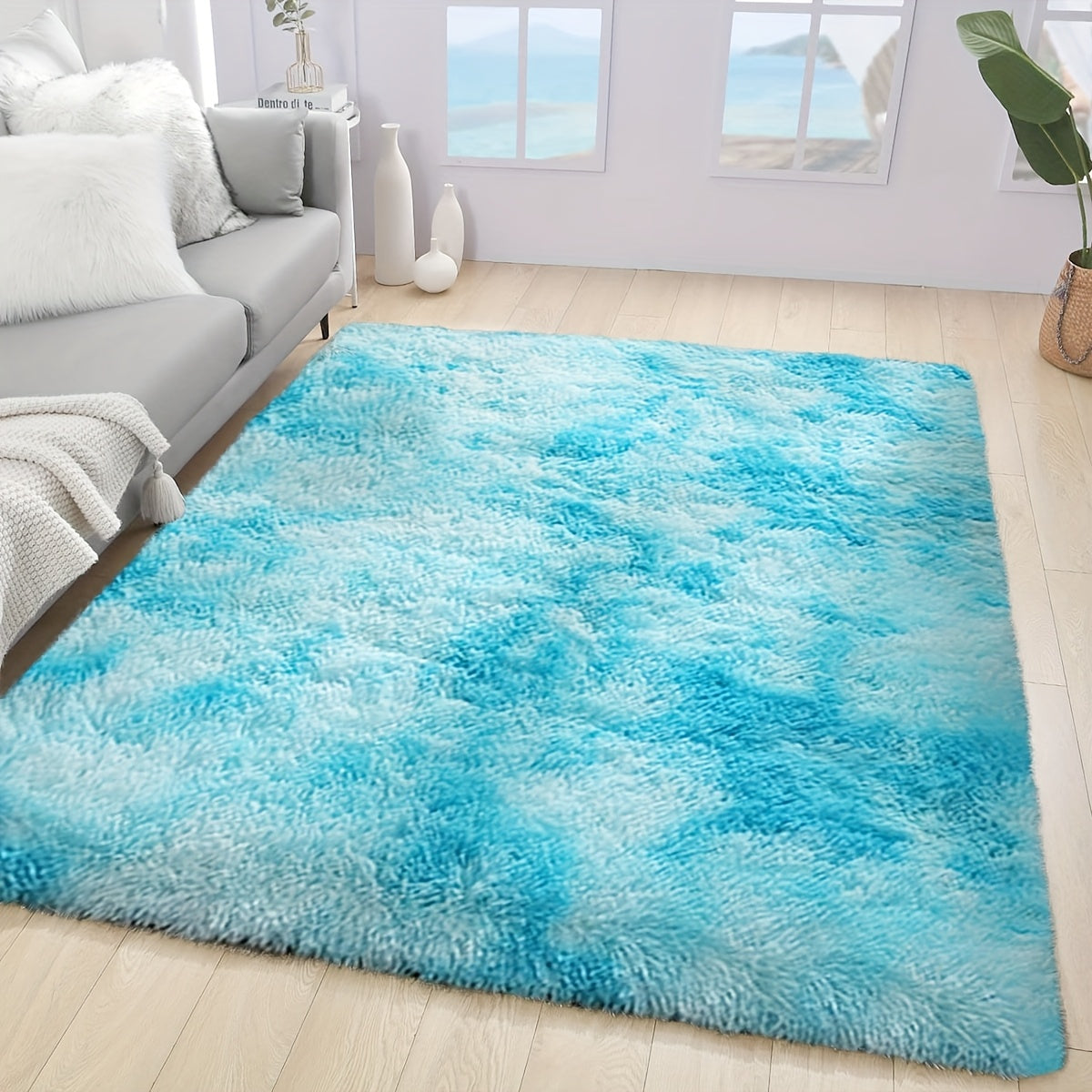 1pc Nordic Minimalist Extra Large Area Mat - Soft Plush Fine Hairs Texture, Gradient Blue Ombre Design,