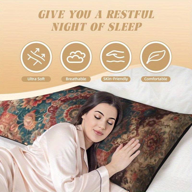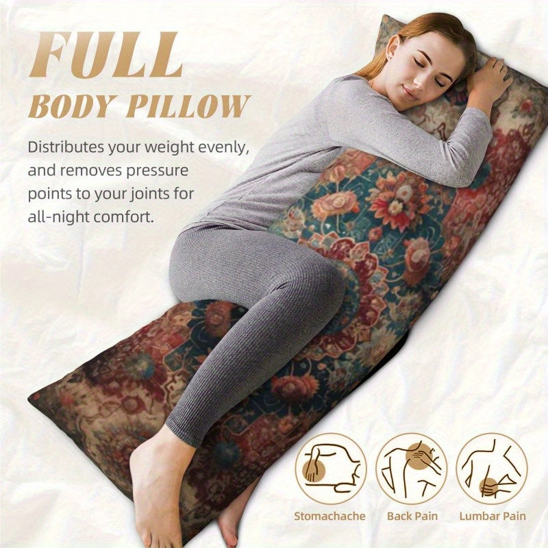 1pc Vintage-Inspired Floral & Geometric Full-Body Pillow, 50x150cm - Ultra-Soft Polyester Fabric