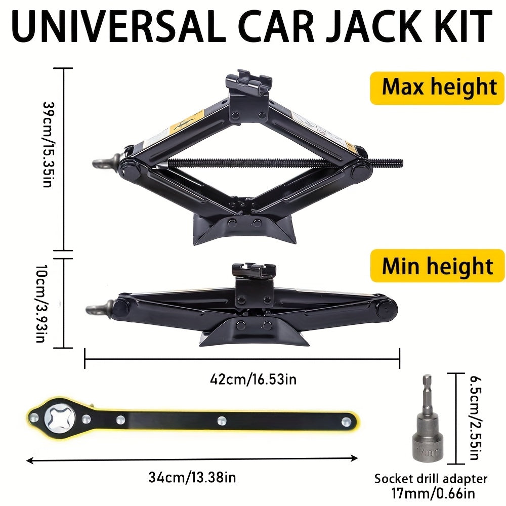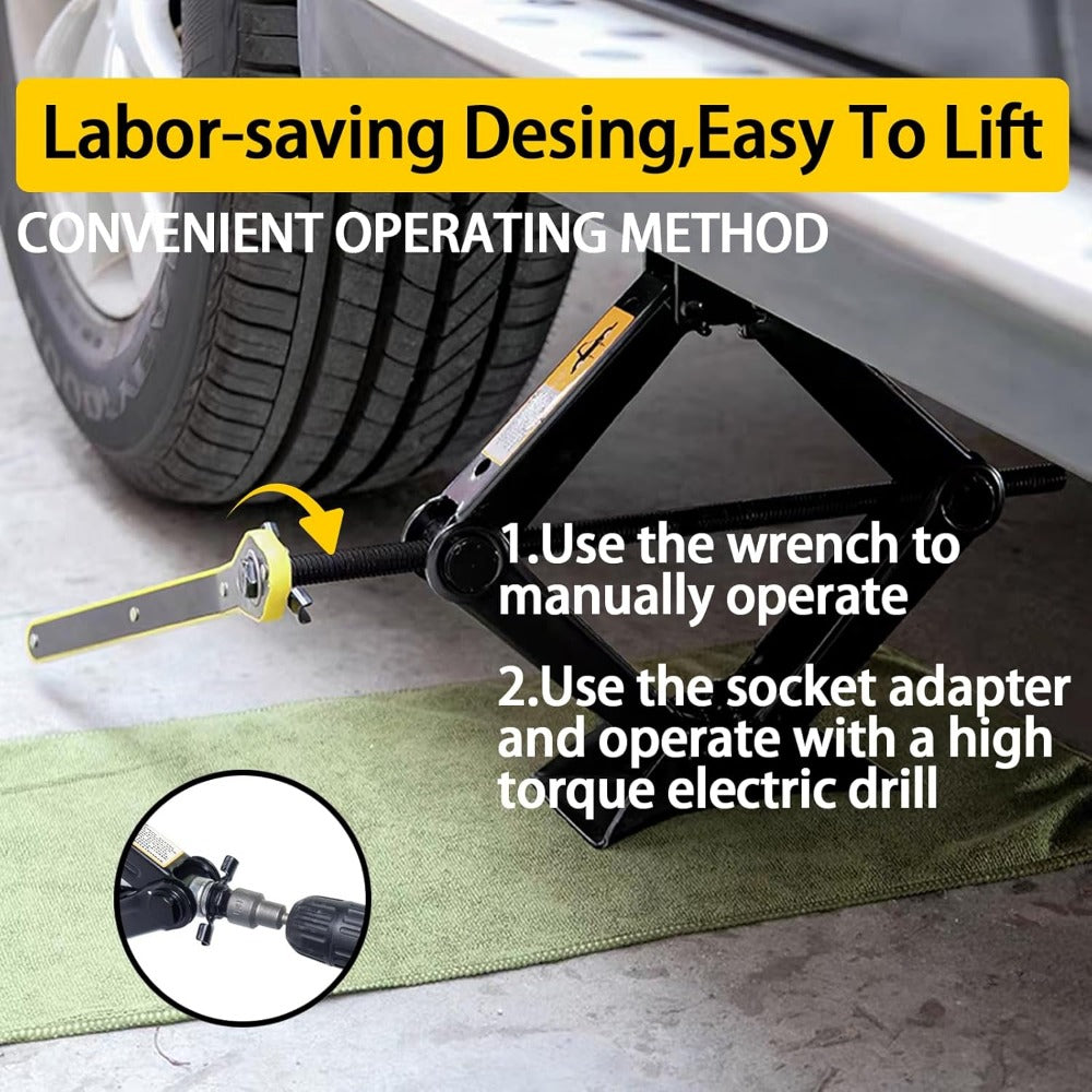 2 Ton Heavy-Duty Scissor Jack Car Lift - Labour-Saving Ratchet Handle & Drill Compatible