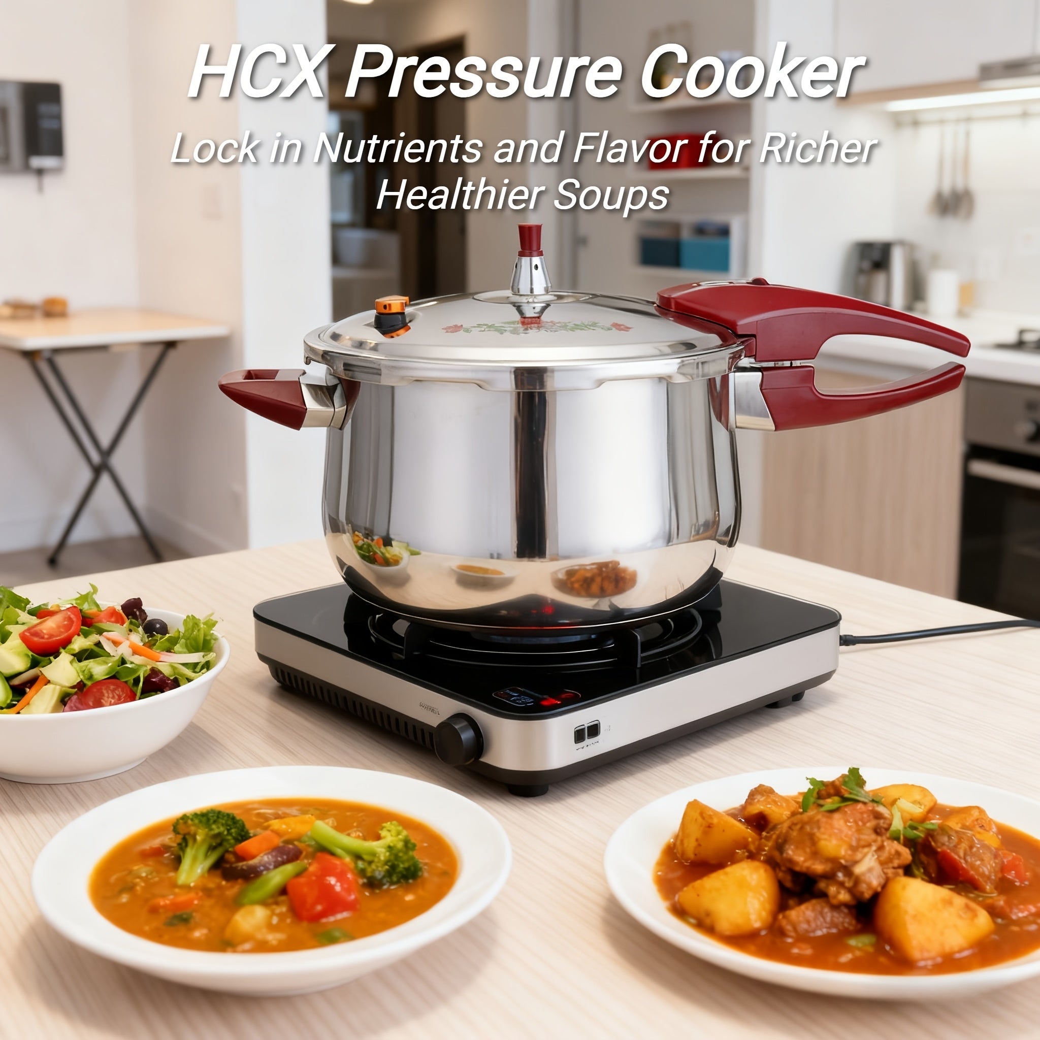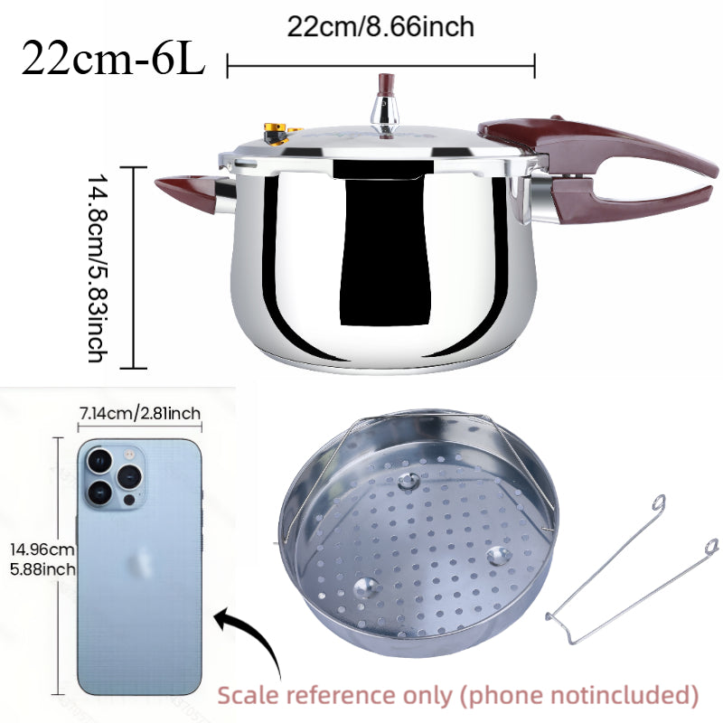 22cm/6L Large Capacity Stainless Steel Pressure Cooker with 1600-Ton Triple-Layer Base, 6 Safety Features