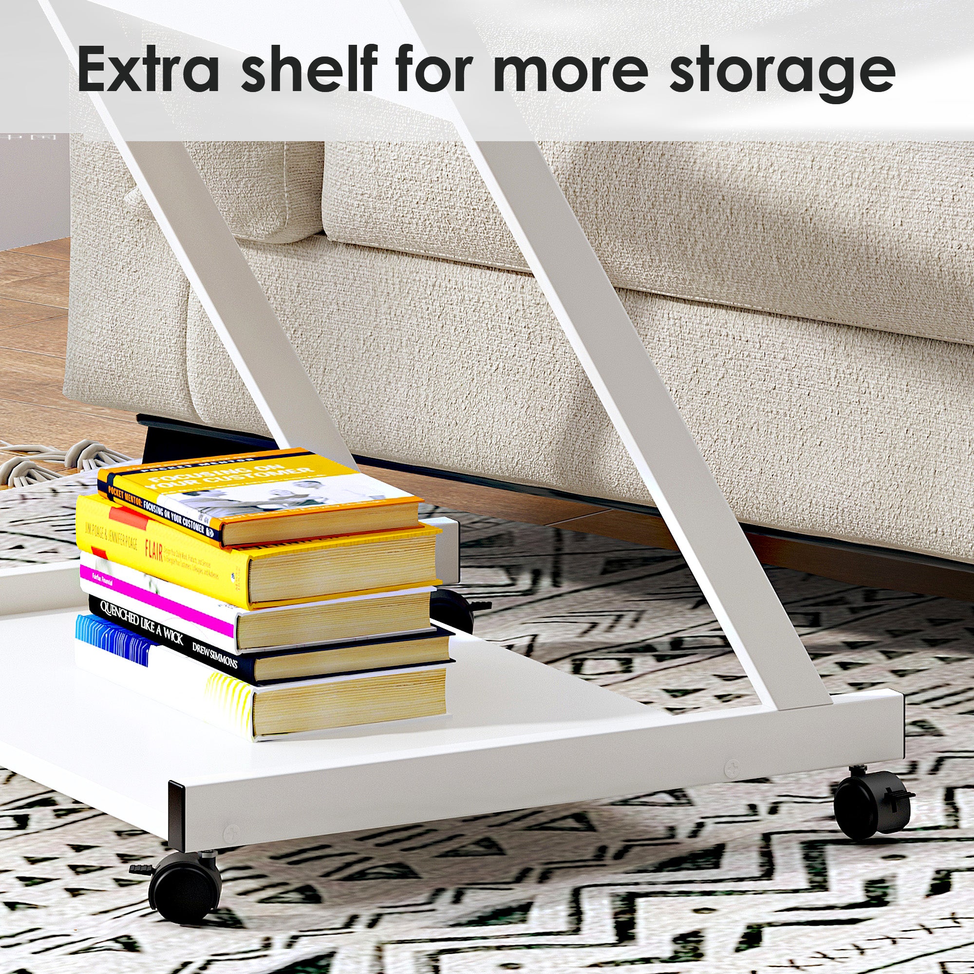 23.6 inch Mobile Laptop Desk, Small Bed Table Portable Computer Desk on Wheels