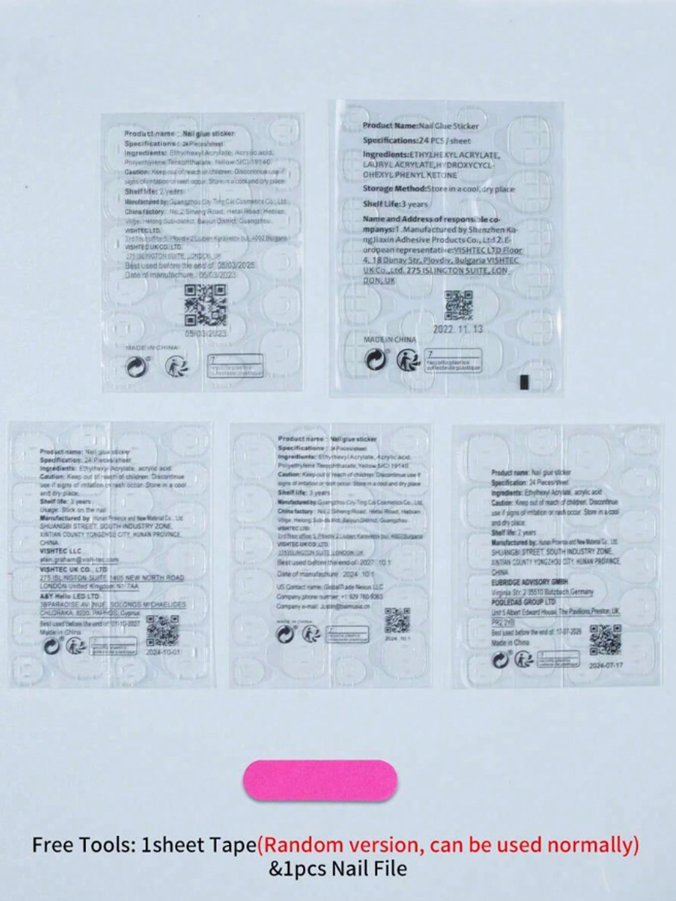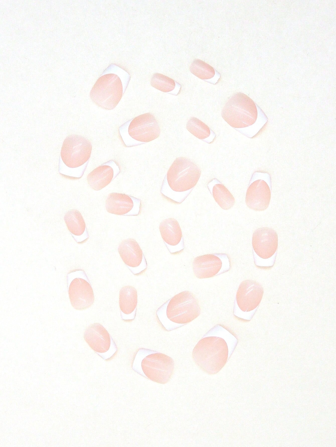 24 ongles à enfiler de forme cercueil courts, de couleur unie simple, avec 1 bande à frotter et 1 colle de gelée