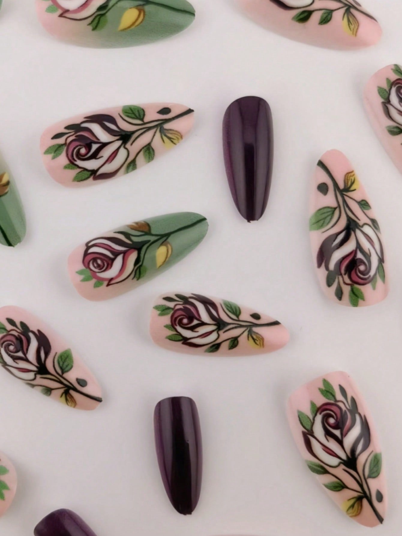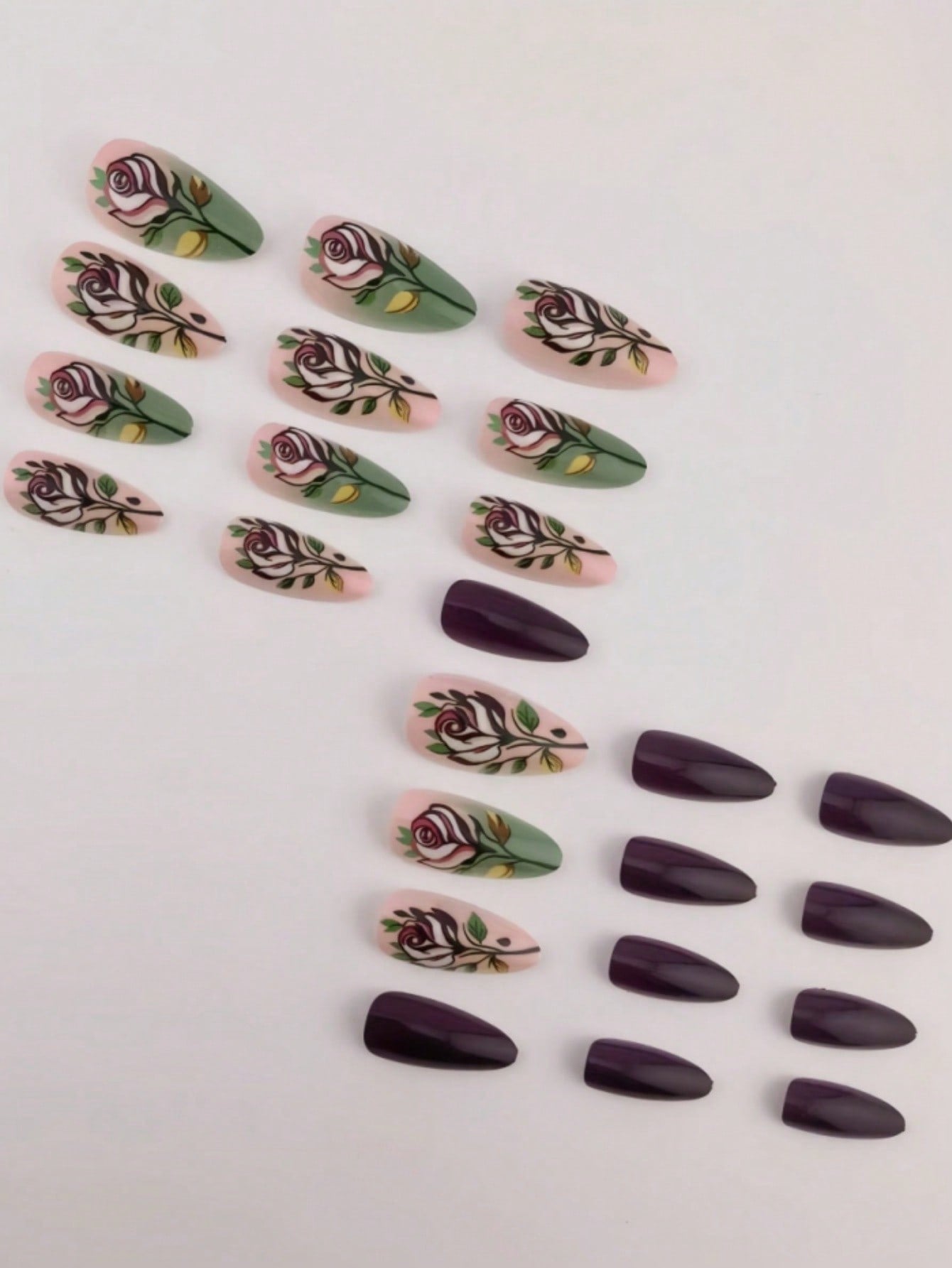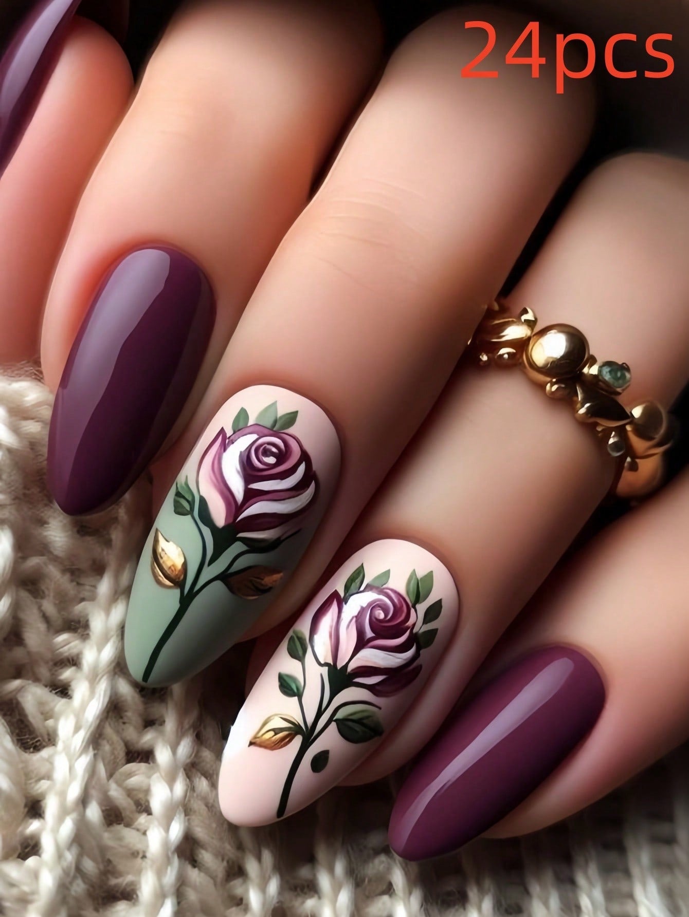 24 pièces ongles à poser, forme amande mi-longs, art des ongles portable