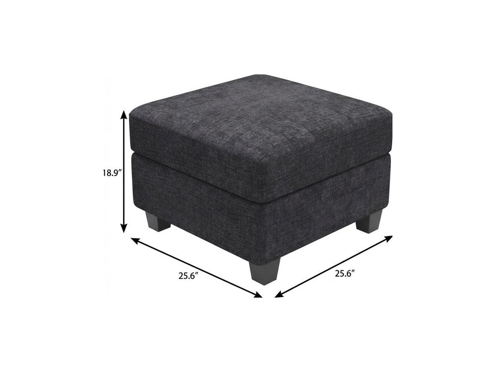 26" Gray and Black Chenille Storage Ottoman