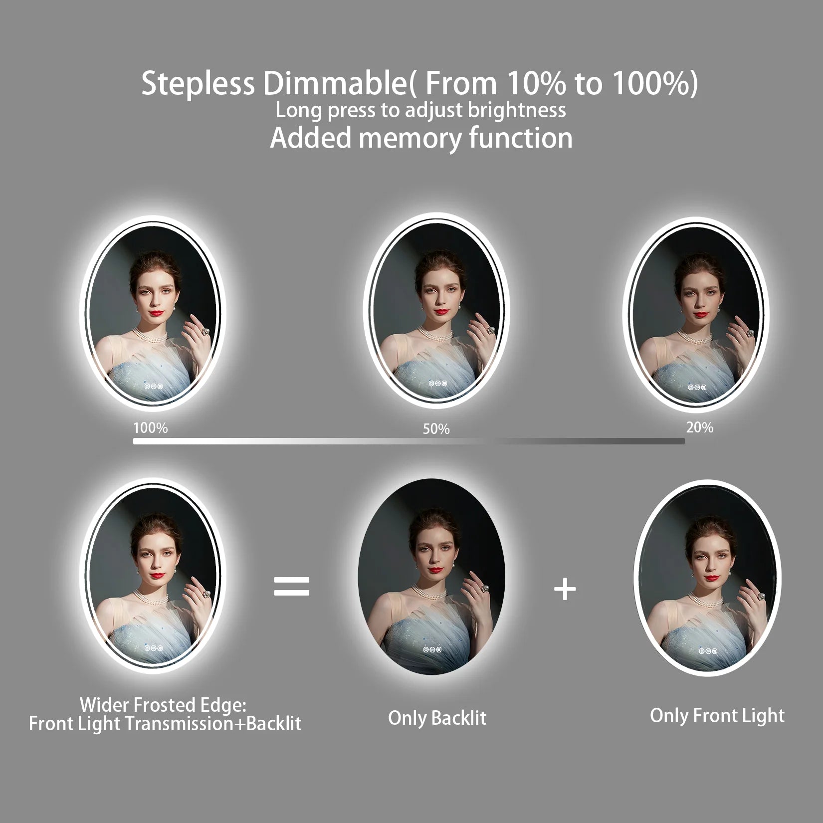 28/32 Inch Ultra Bright Oval LED Bathroom Mirror Anti-Fog Dimmable Backlit Lighted Vanity Mirror 3 Touch Sensor Switch