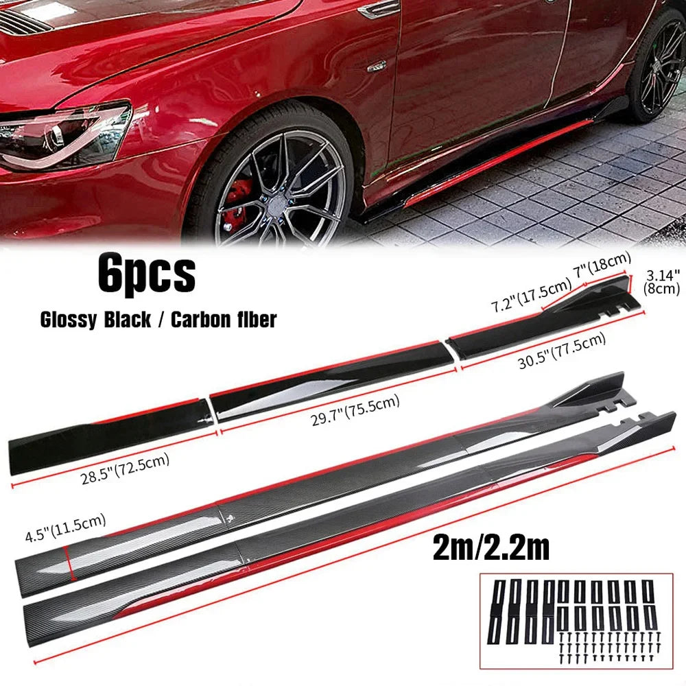 2M/2.2M Car Universal Side Skirts Extension Rocker Panels Lip Splitters 6PCS Side Spoiler For Civic Benz BMW ABS Car Accessories