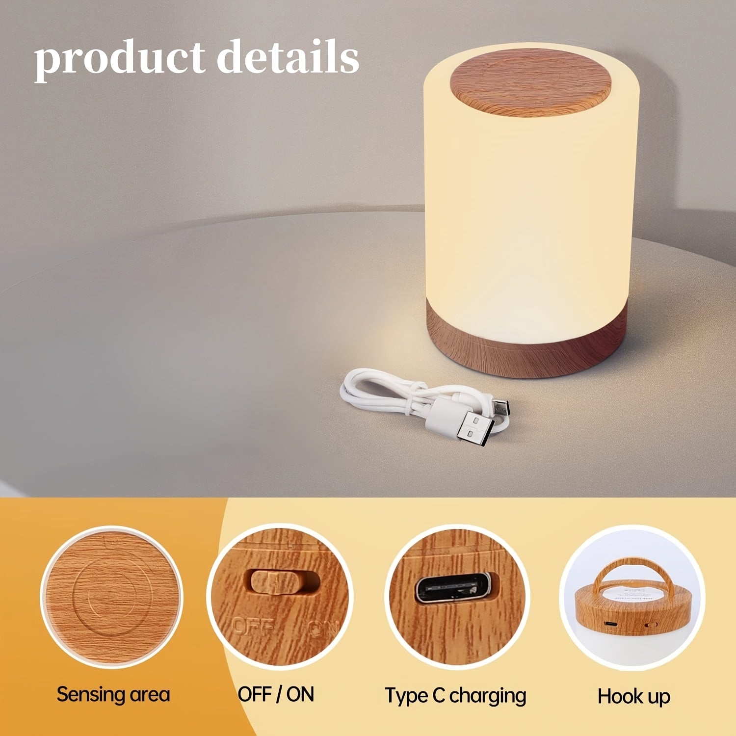 2pcs LED bedside lamp, night light with timing function, three lighting modes to choose from