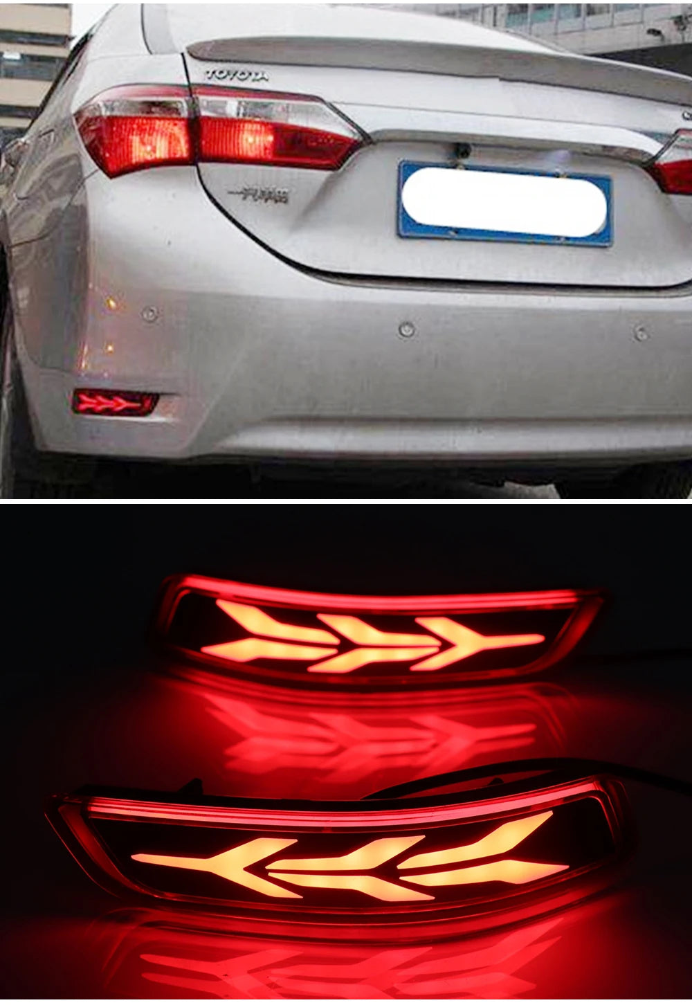 2Pcs LED Rear Bumper Reflector Lamp Driving Warning Light Brake Stop Light Turn Signal Light For Toyota Corolla Altis 2014-2018