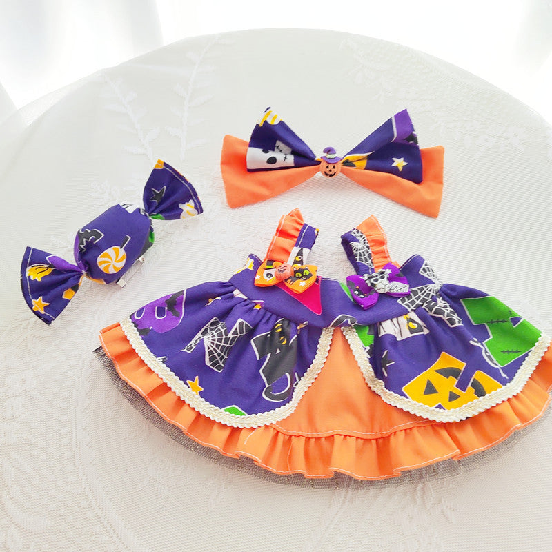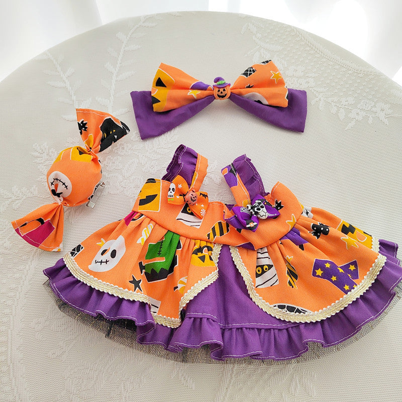 Color: hair band pumpkin four-piece set, pumpkin apron three suits, orange Halloween three-piece set, purple Halloween three-piece set