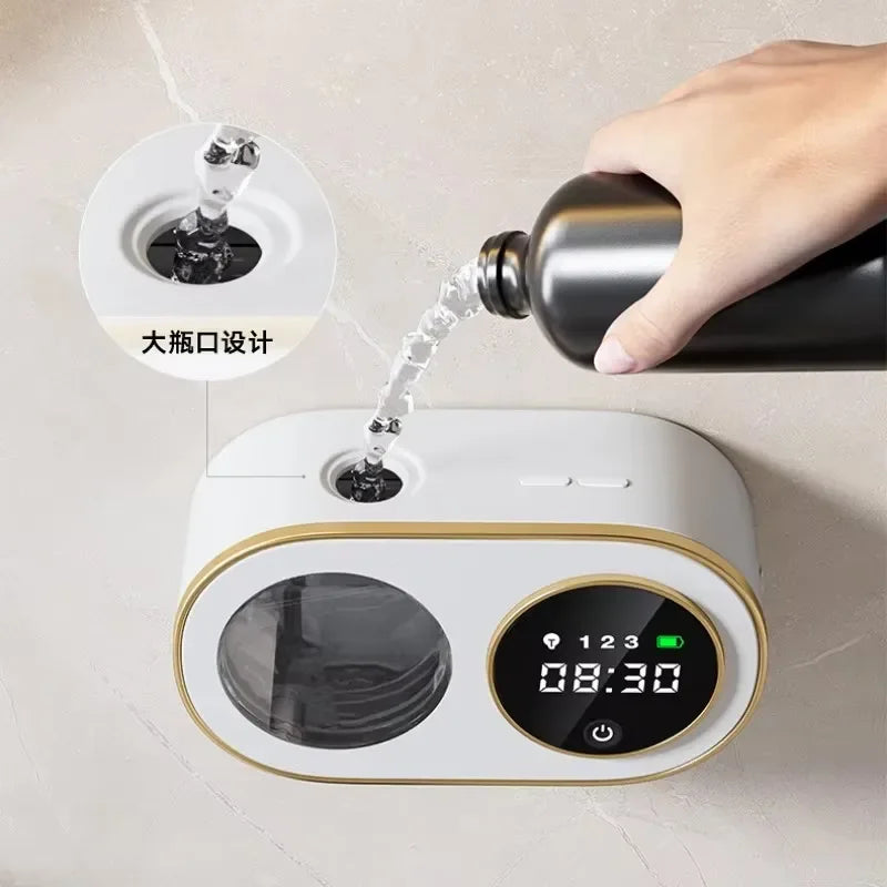 320ml Wall-Mounted Automatic Foaming Soap Dispenser with HD LED Digital Clock
