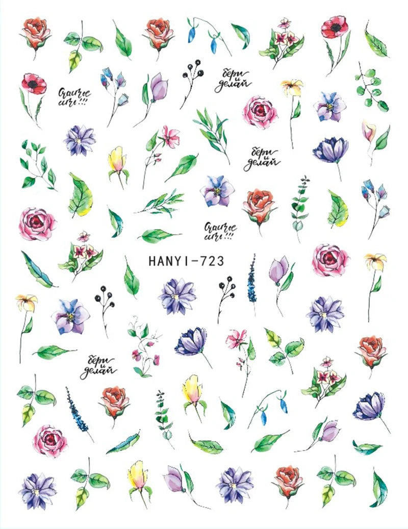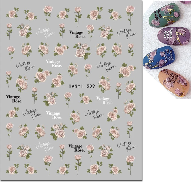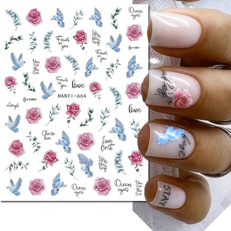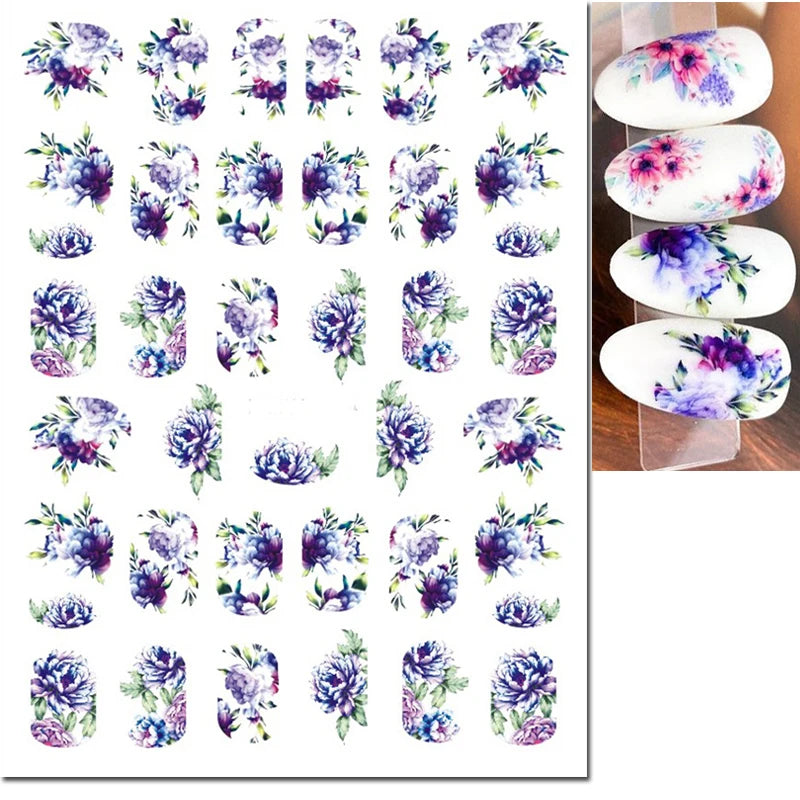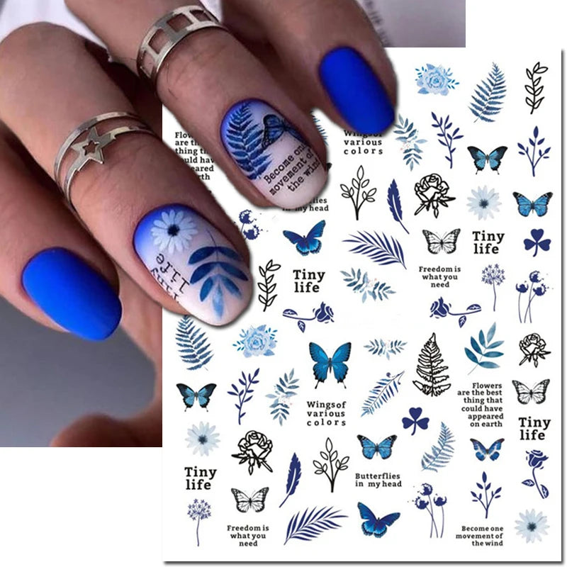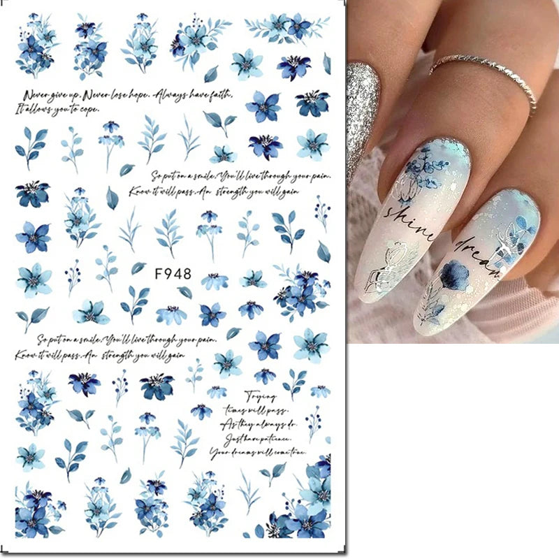 3d Nail Art Decals Elegant White RoyalBlue Roses Flowers
