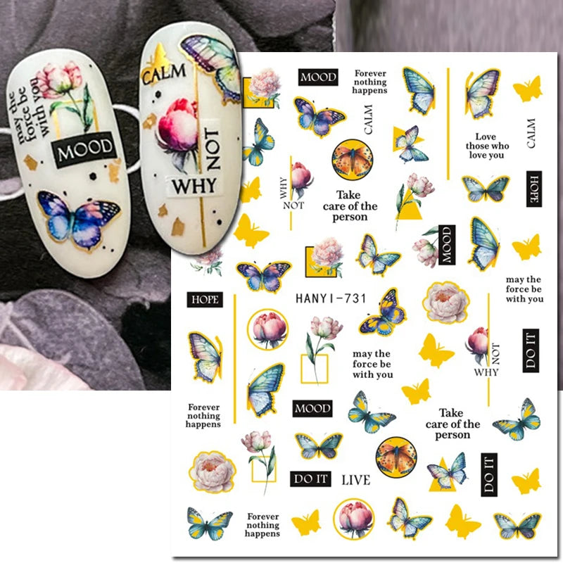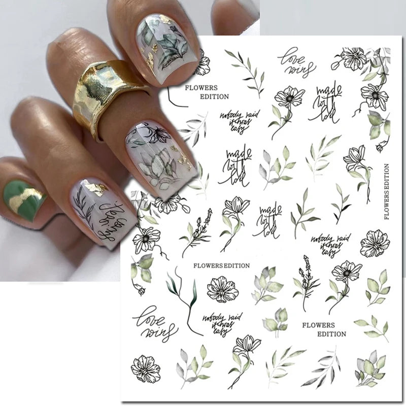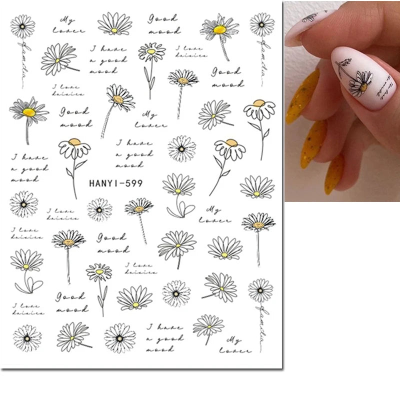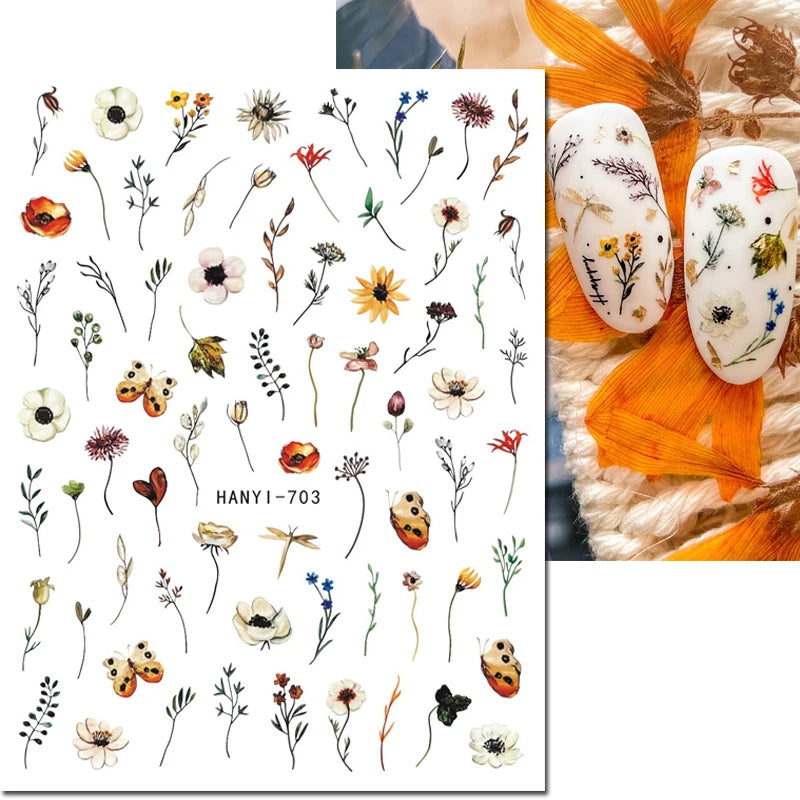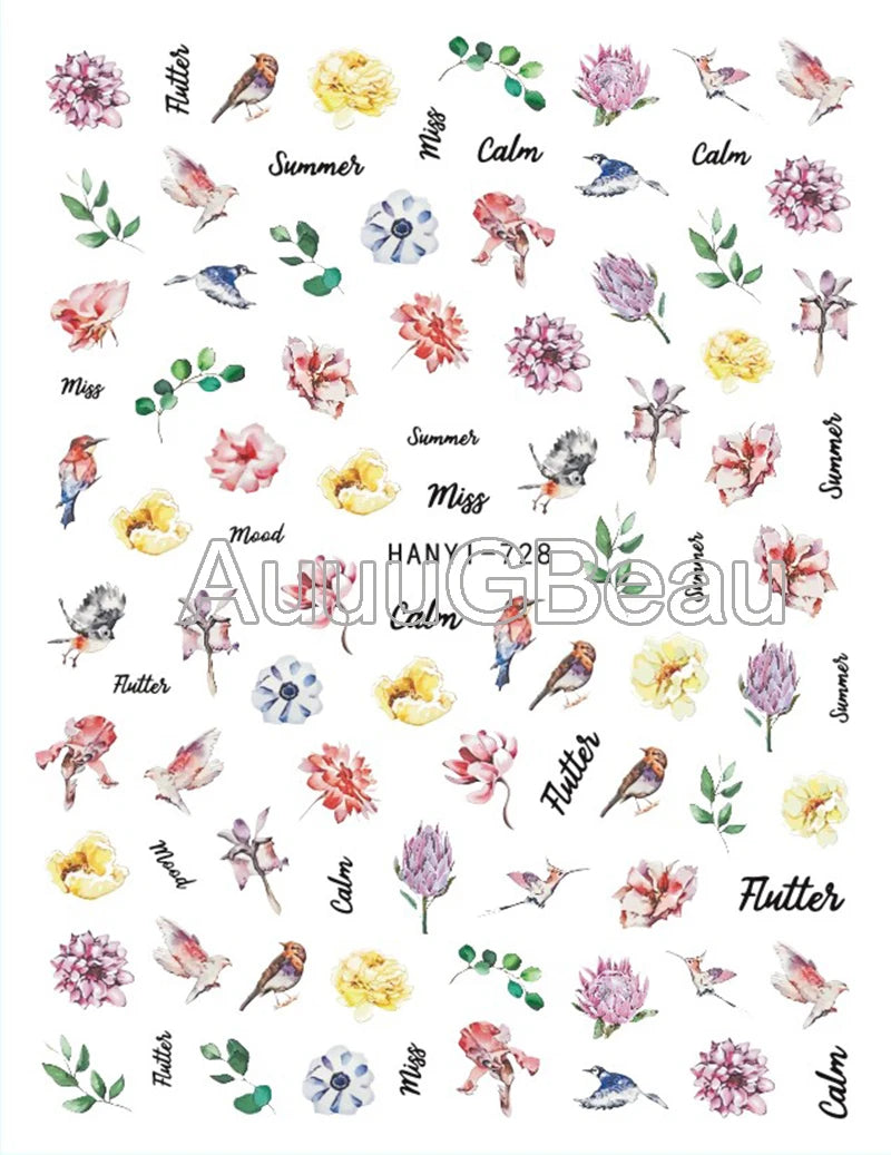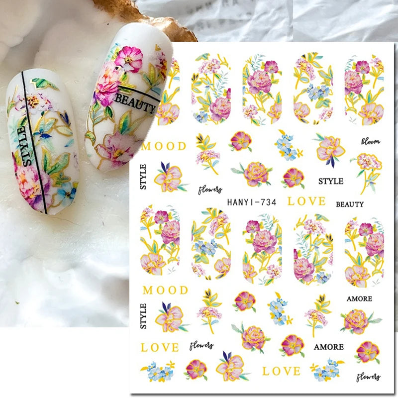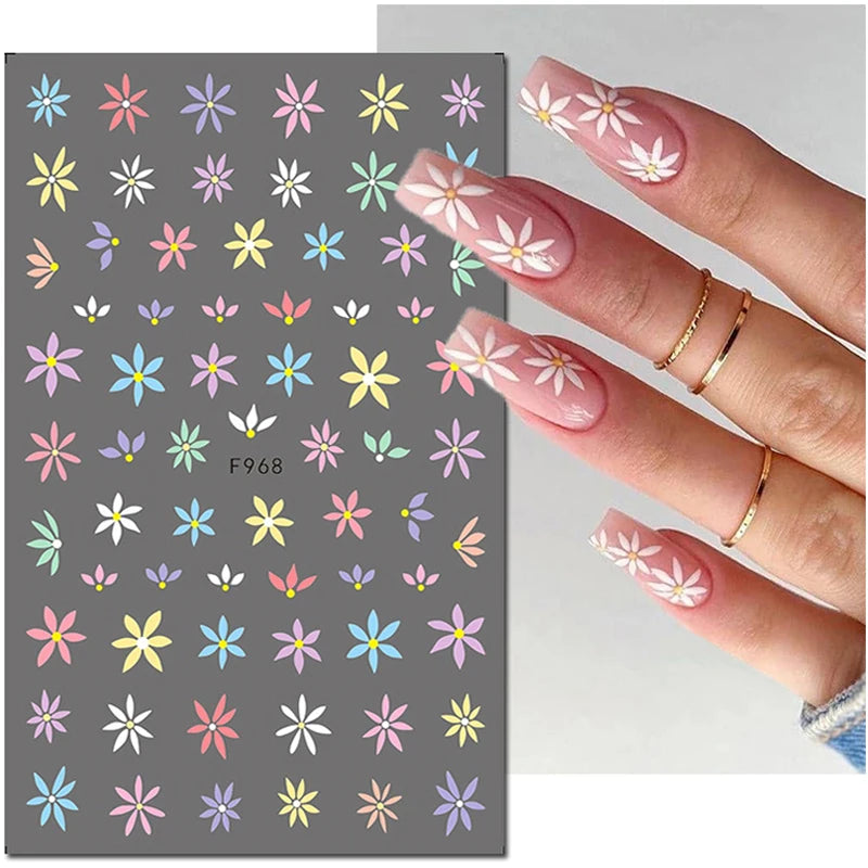 3d Nail Art Decals Elegant White RoyalBlue Roses Flowers
