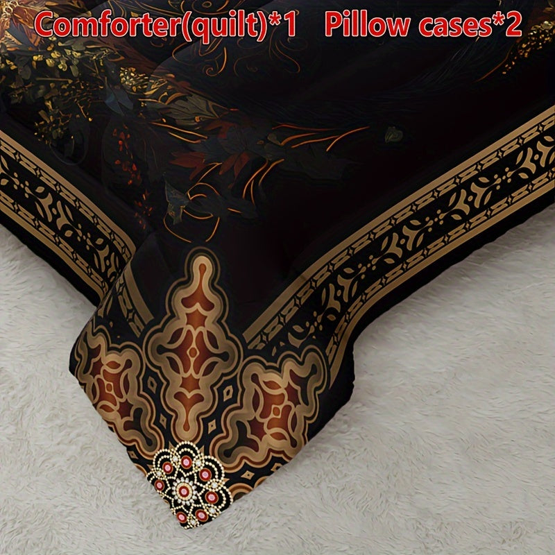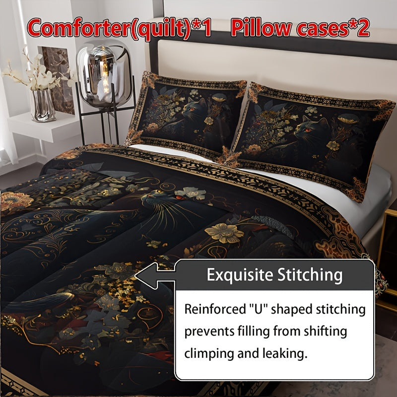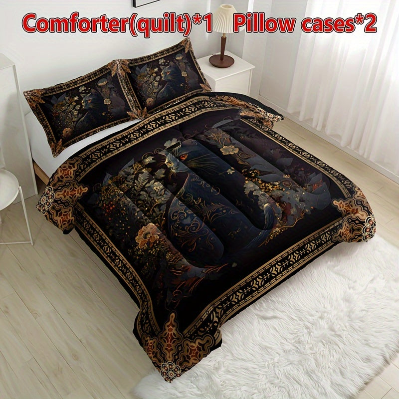 3pcs Fashionable High-End Quilt Set with Flowers and Animals (1 Quilt + 2 Pillowcases without Pillows)