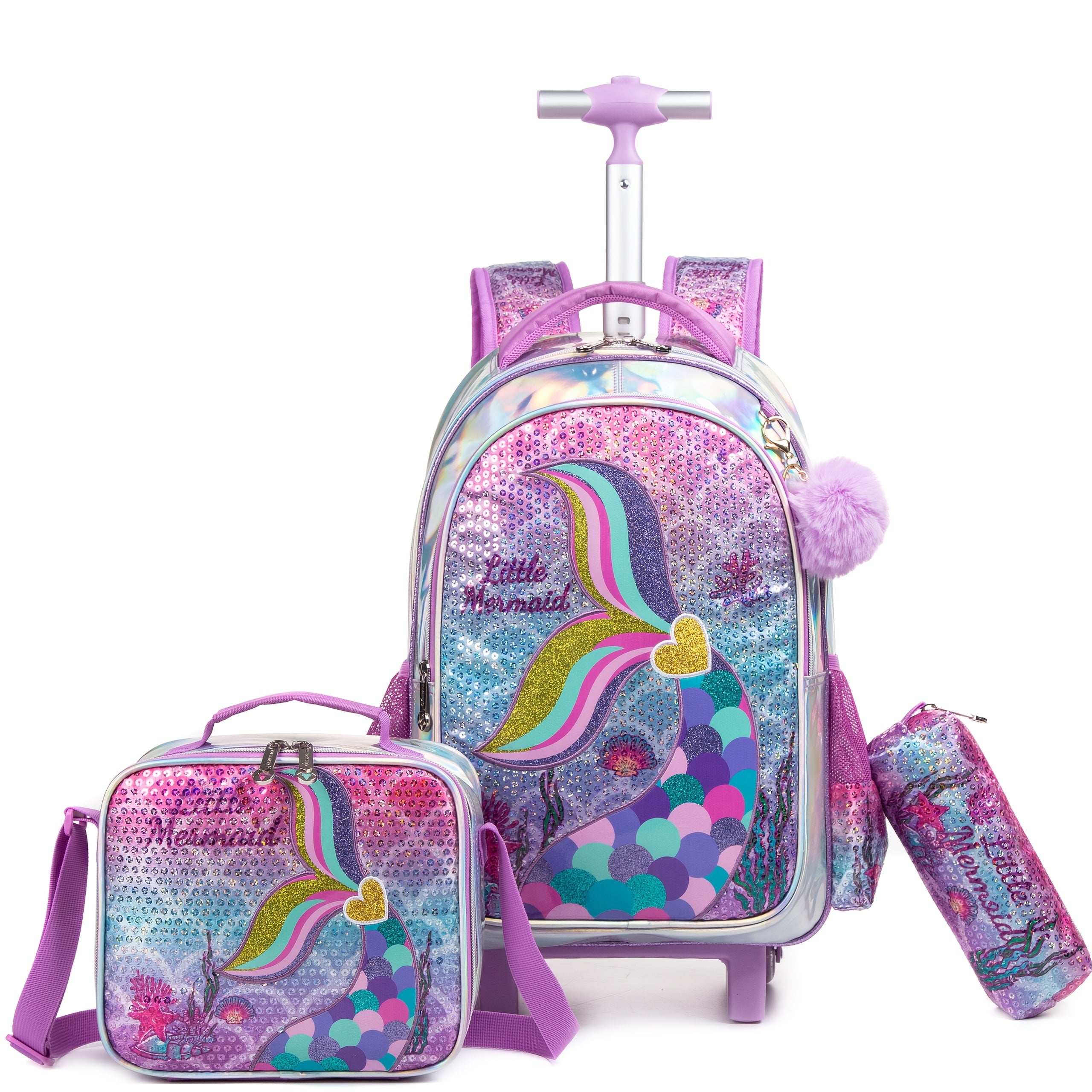3pcs Purple Pink Series Integrated Rolling Backpack Set Rolling Backpack, Shoulder Bag, Pencil Case