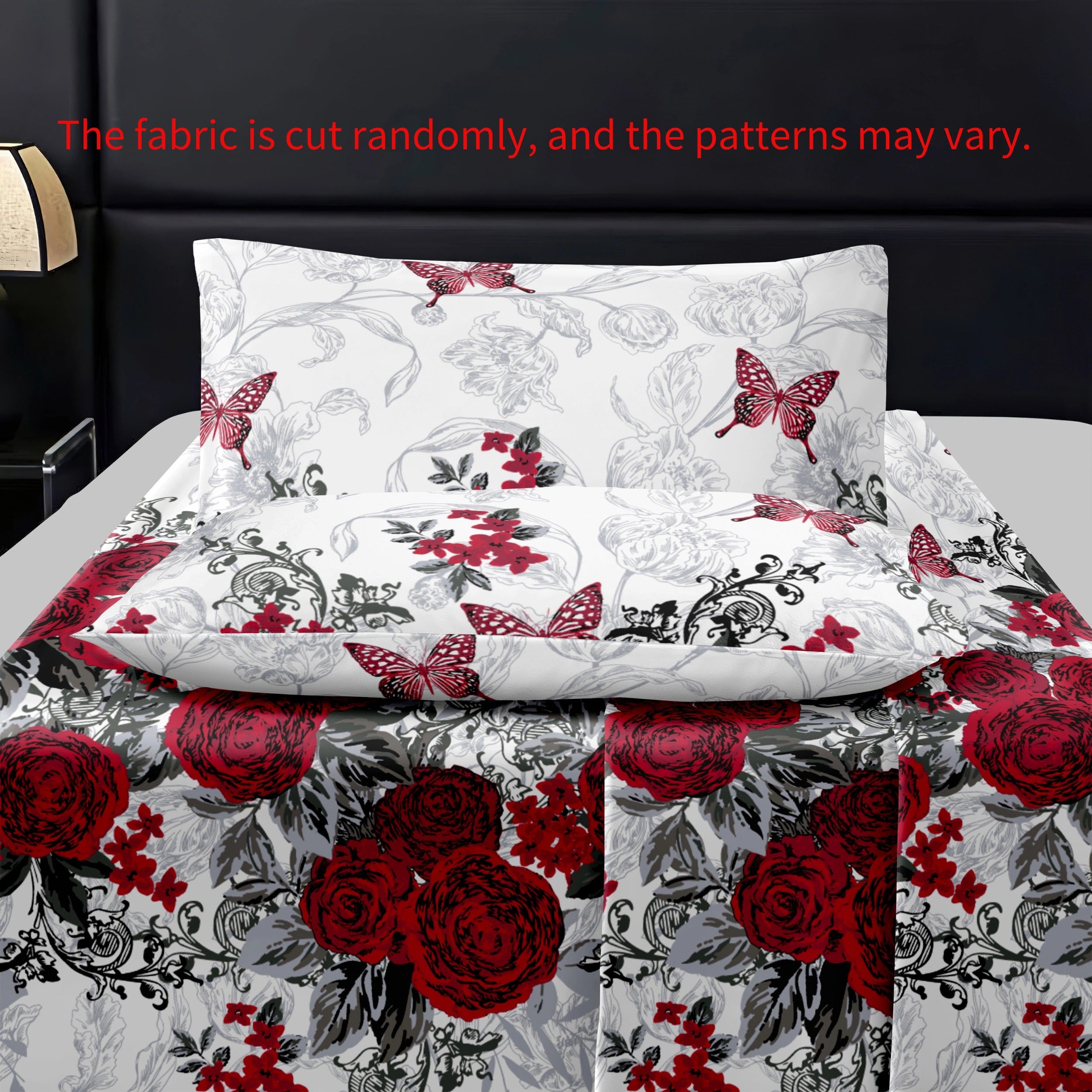 3pcs Red Small Butterfly Rose Romantic Flower Cluster Down Duvet Cover Three-Piece Set, Bedding Sets
