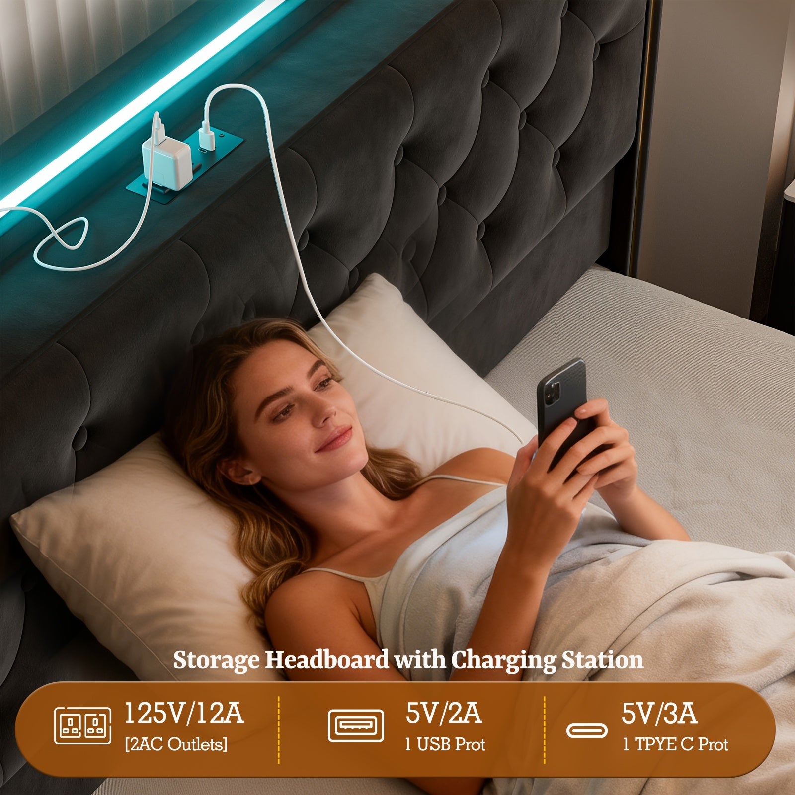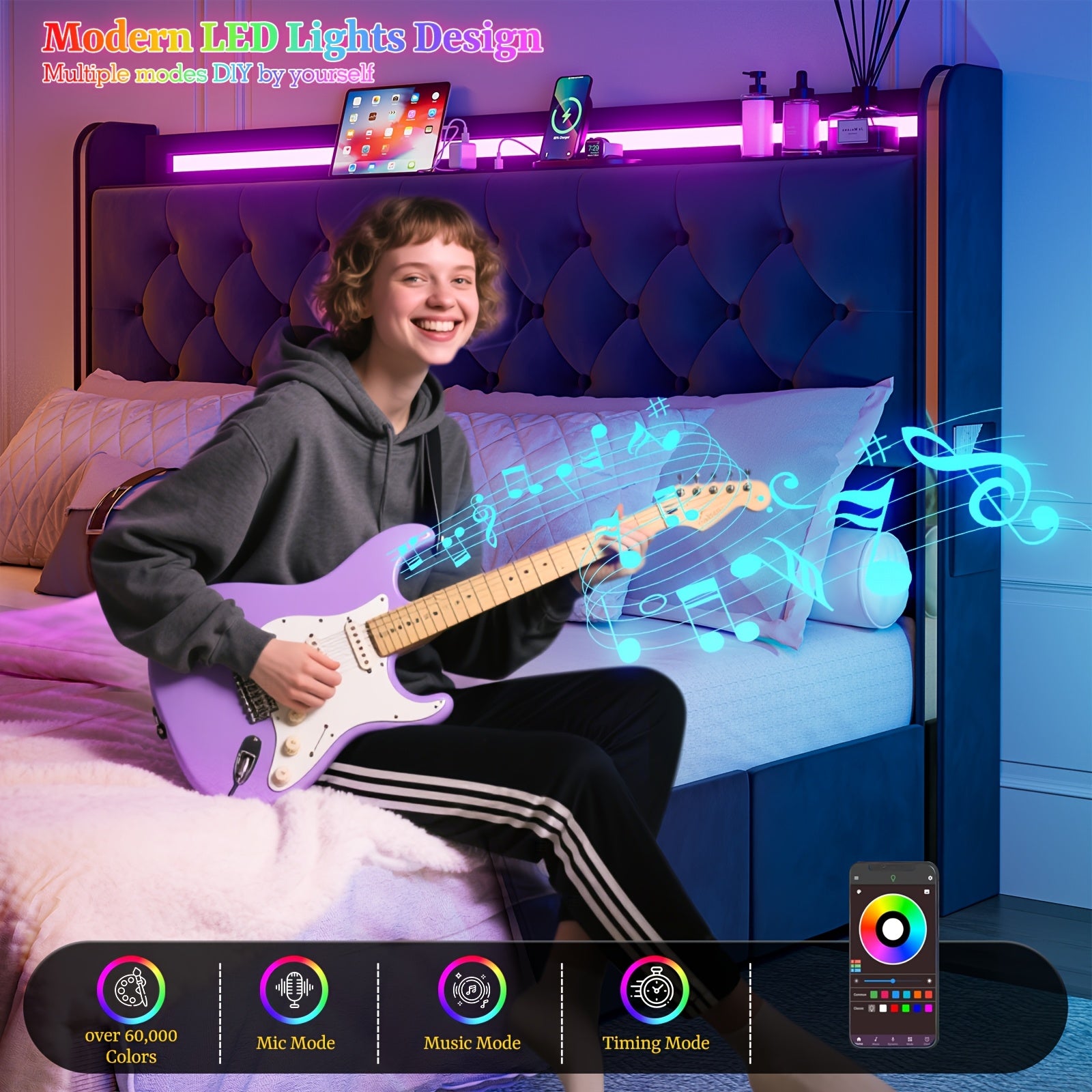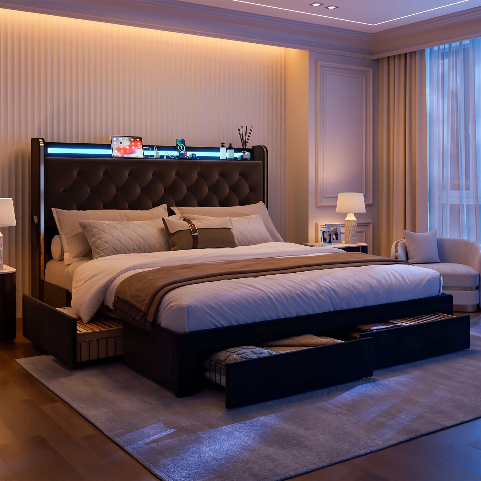 49.2" Tall Bed Frames with 4 Drawers, Velvet Platform Bed with Wingback Storage Headboard,