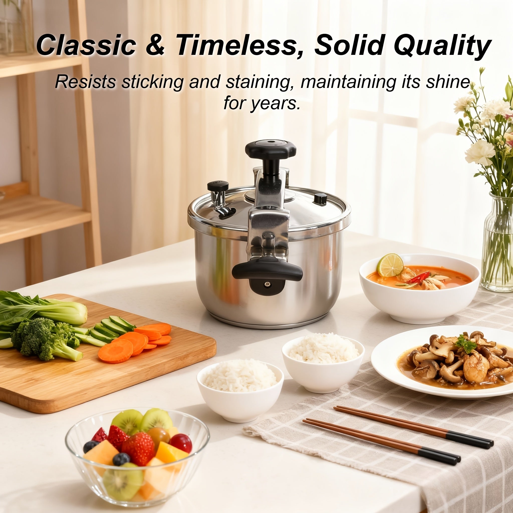 5L-13L Heavy-Duty Stainless Steel Pressure Cooker with Crossbar Safety Lock & High Quality Rotary Knob