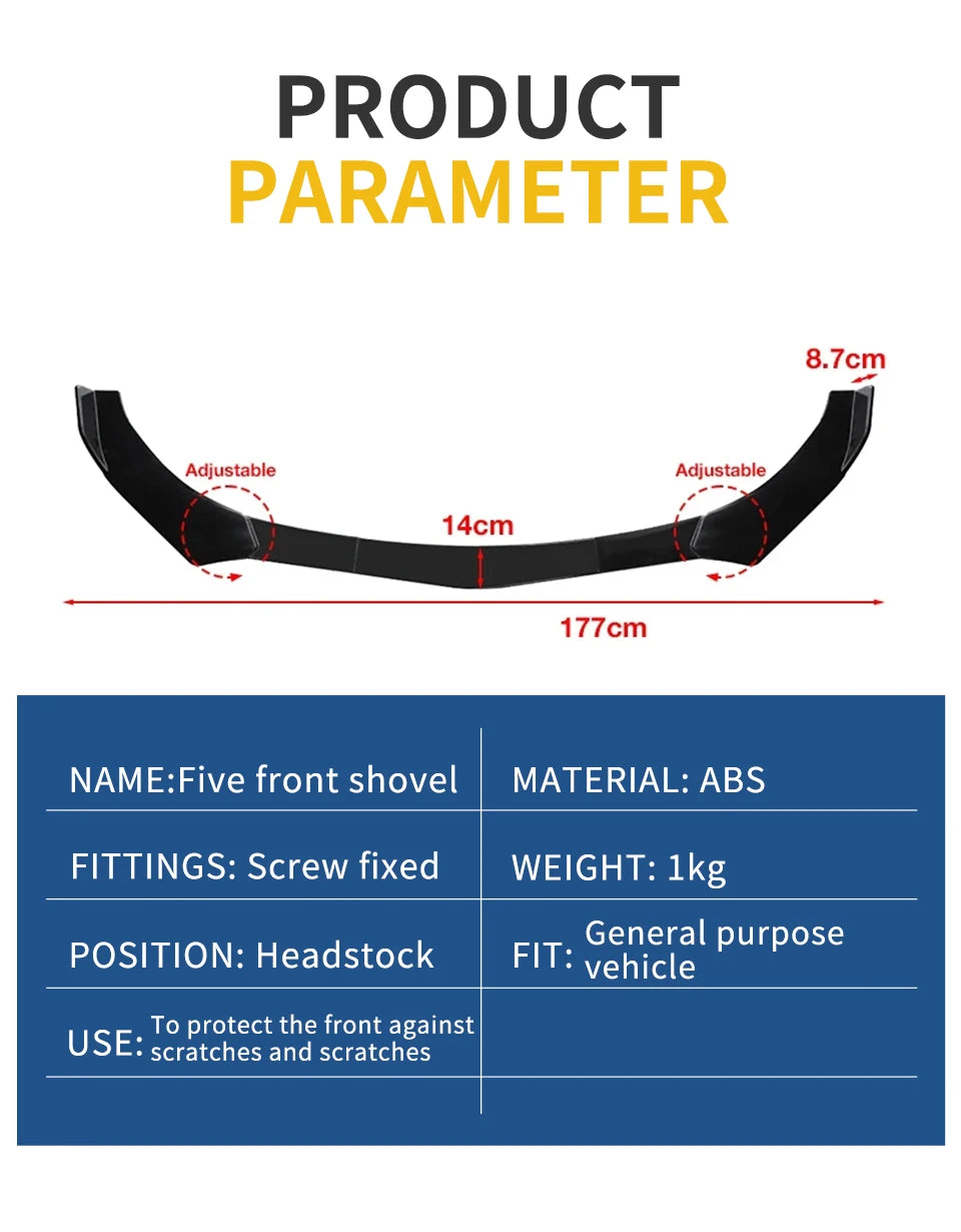 5PCS Adjustable ABS Front Universal Bumper Separator Body Kit Duck Lip Splitter For Volkswagen For BMW For Audi For Honda