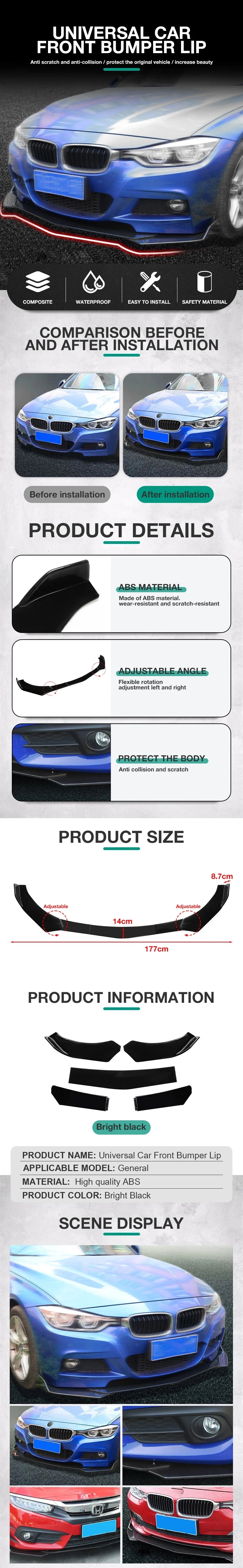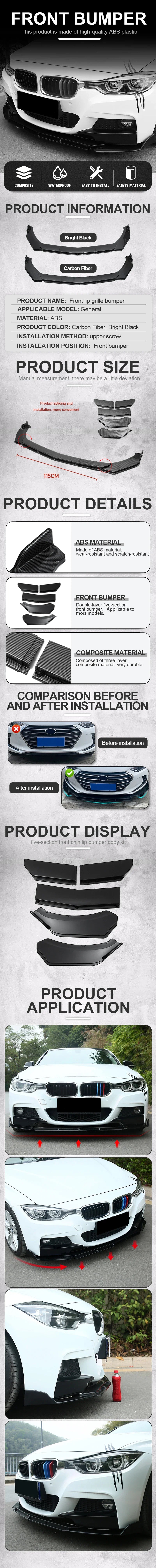 5Pcs Universal Car Front Bumper Separator Bumper Lip Body Kit Duck Lip Separator For BMW For Benz For Volkswagen For Honda