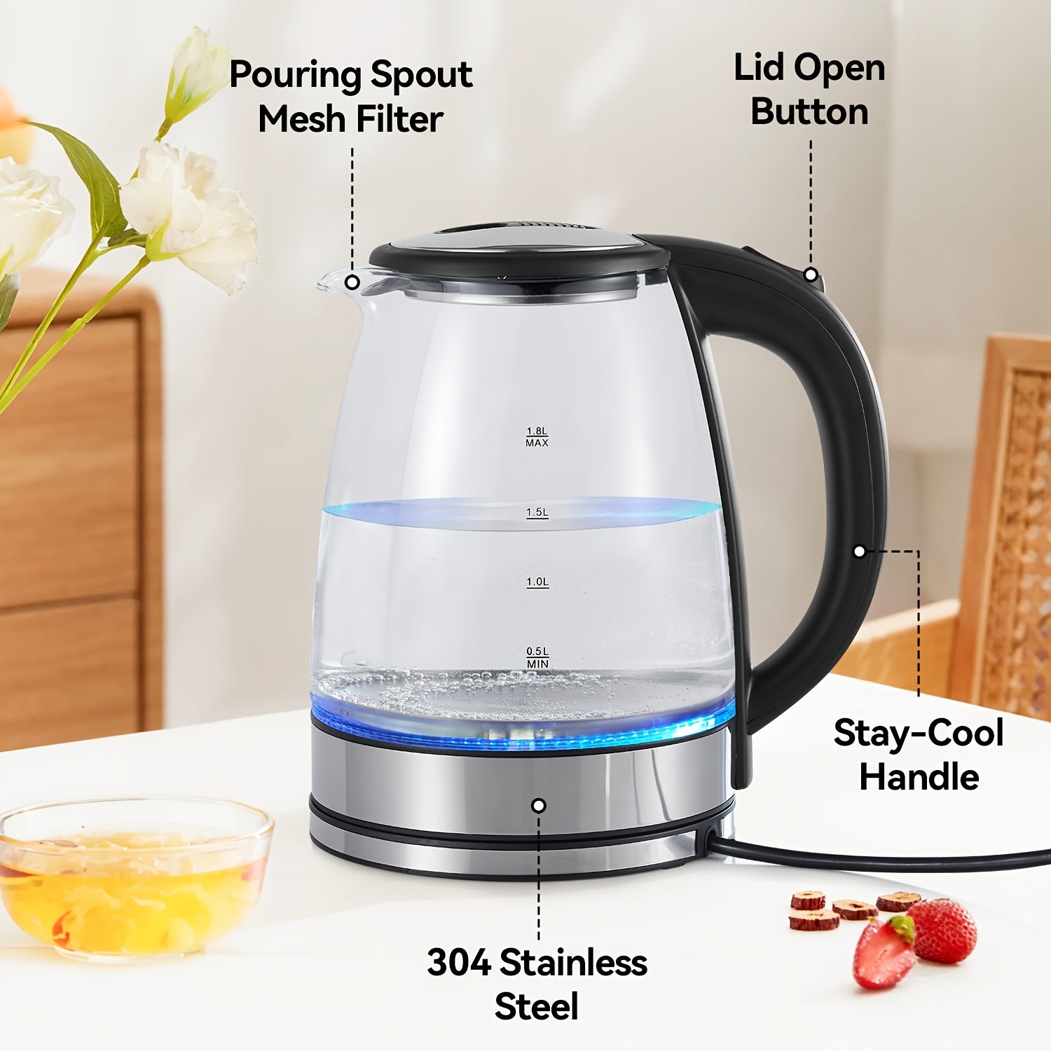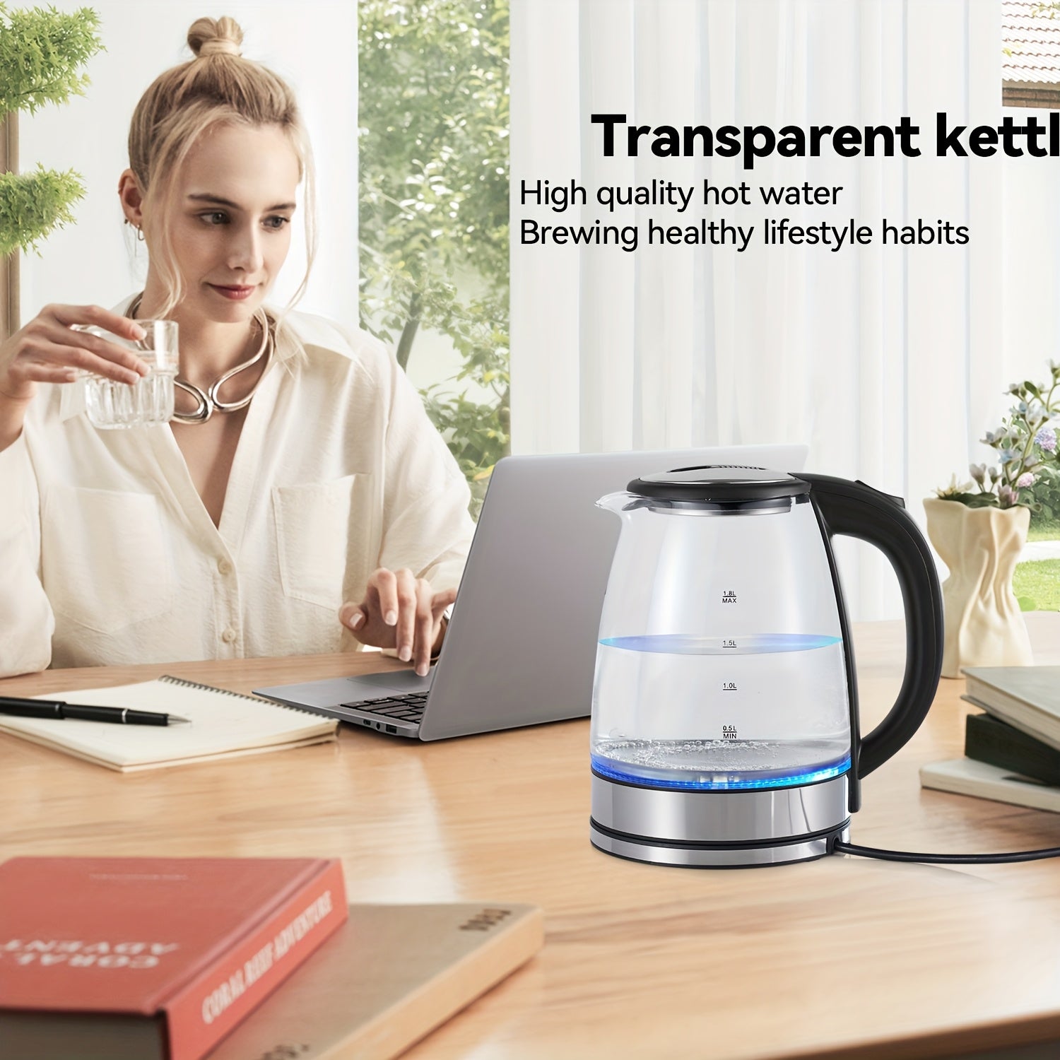 60.87oz Blue Glass Intelligent Electric Water Heater for Home Use, Instant Boil with Automatic Power Cut