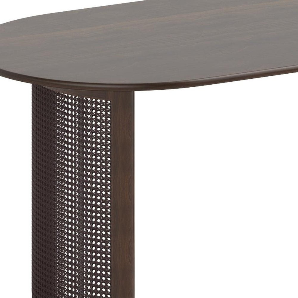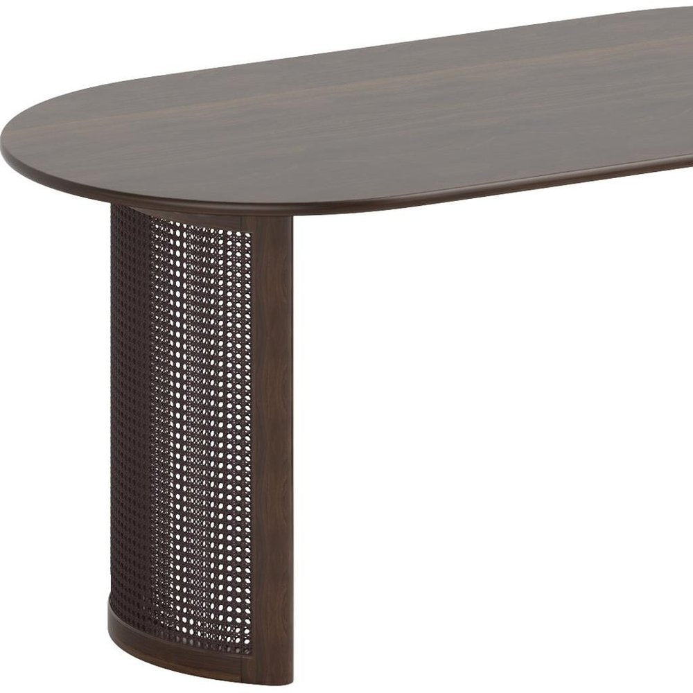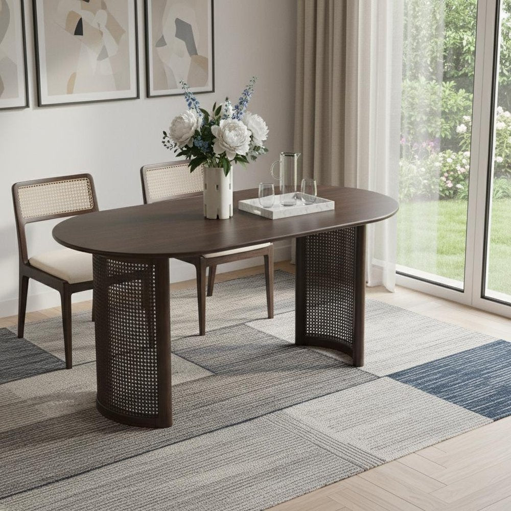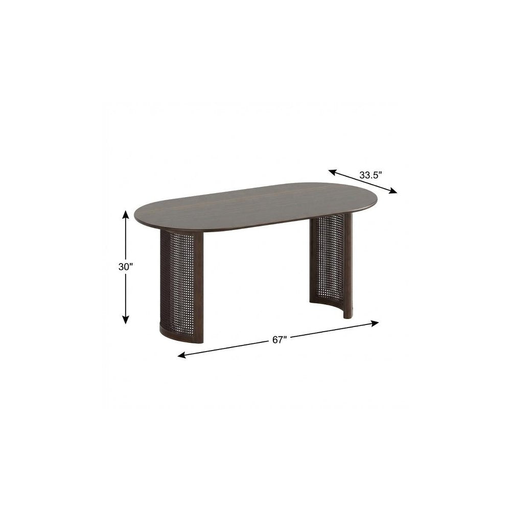 67" Walnut Wood Double Pedestal Base Oval Dining Table