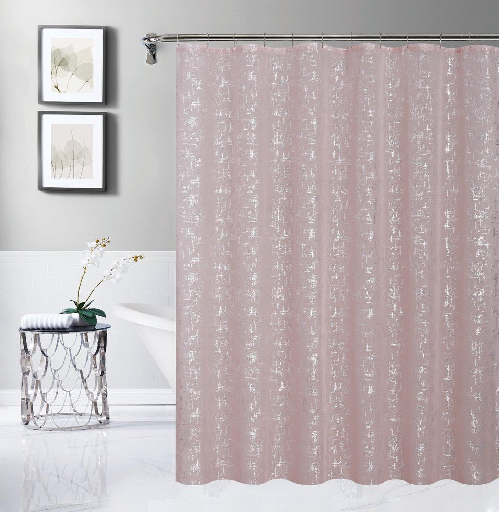 72" Blush And Silver Abstract Shower Curtain