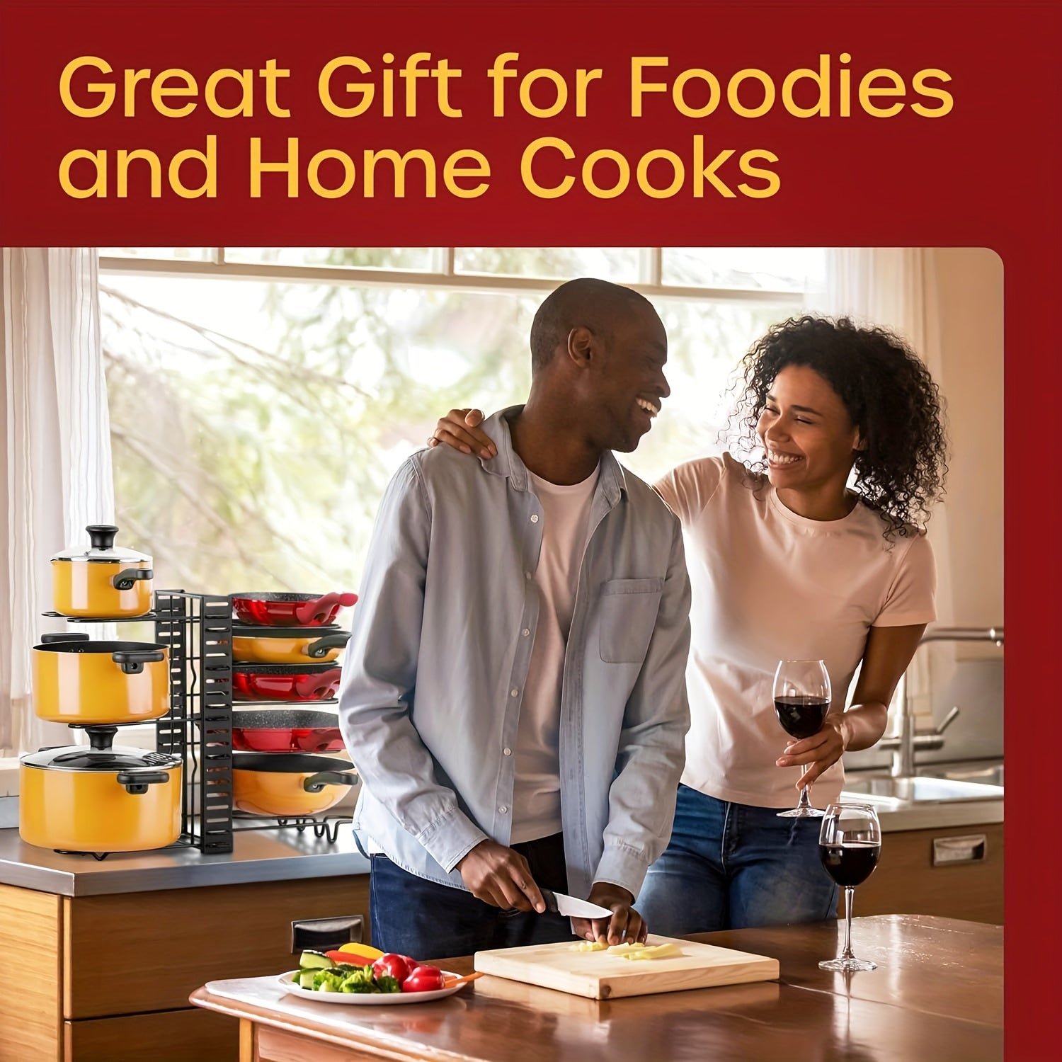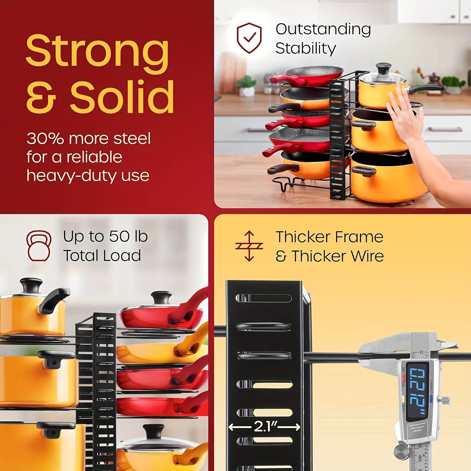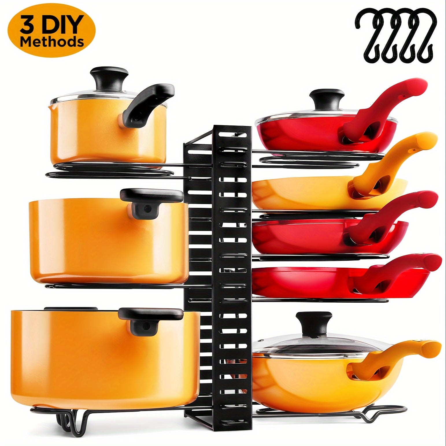 8-Tier Adjustable Pot Rack Cabinet Storage - Organize Kitchen Pots, Bowls, Utensils with 4 Hooks