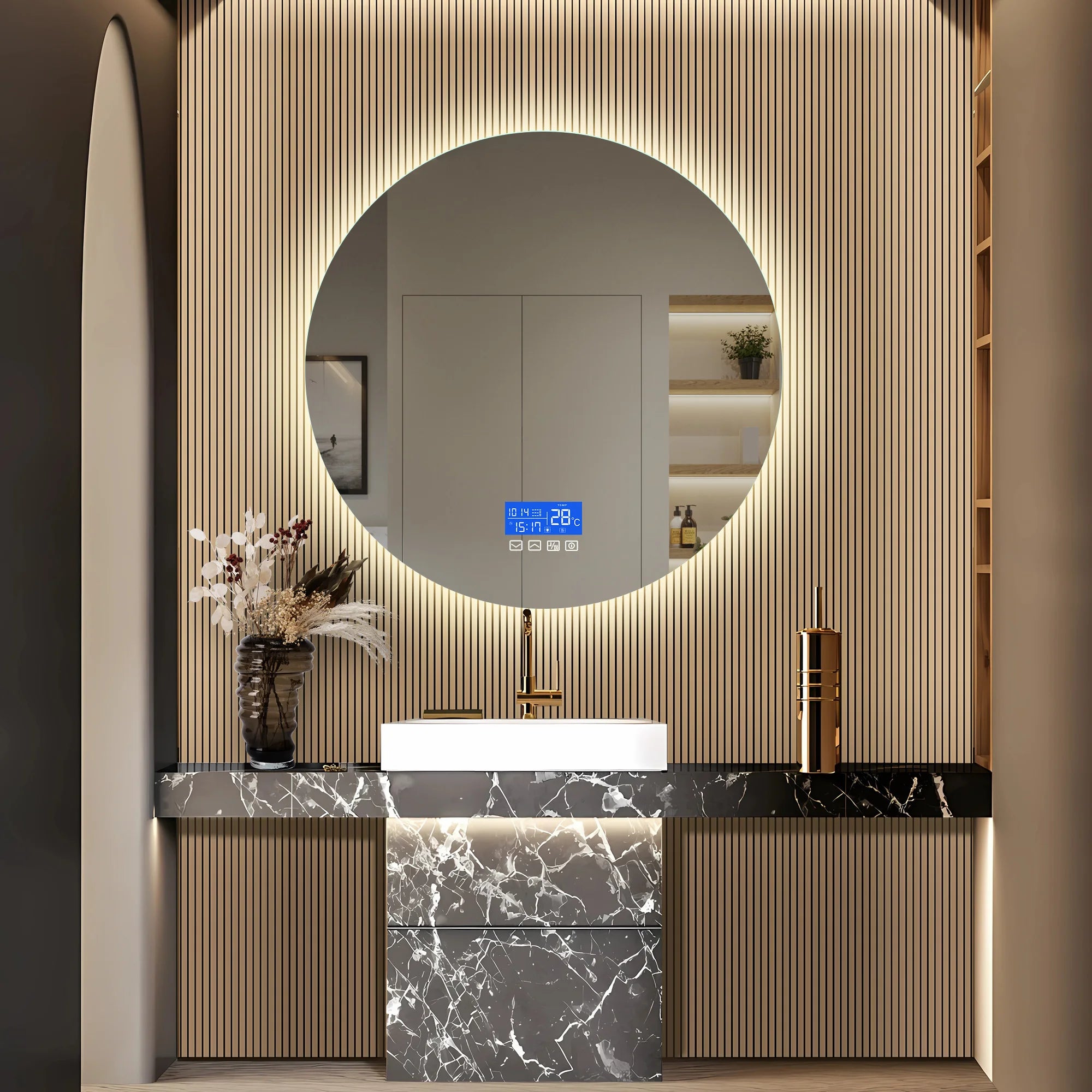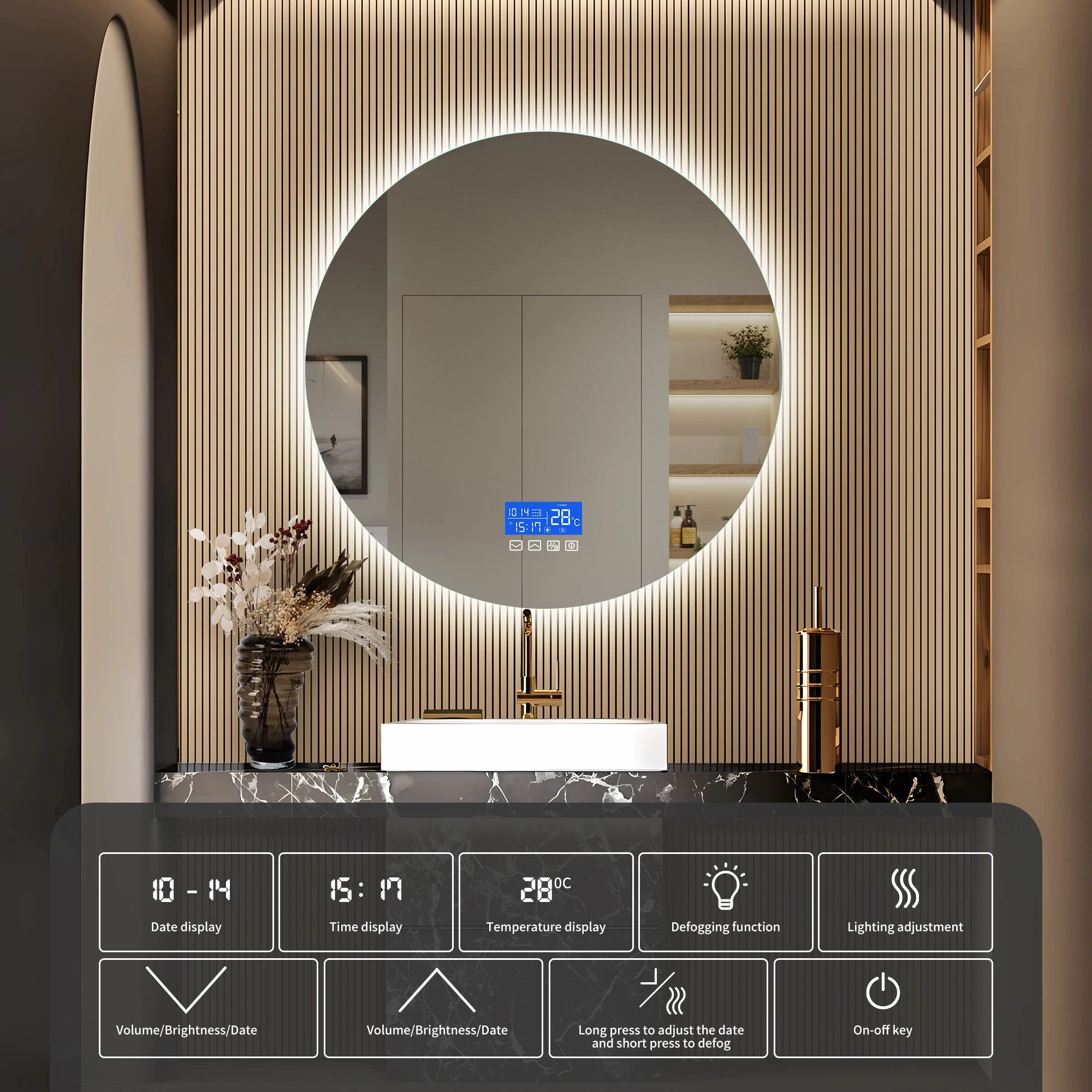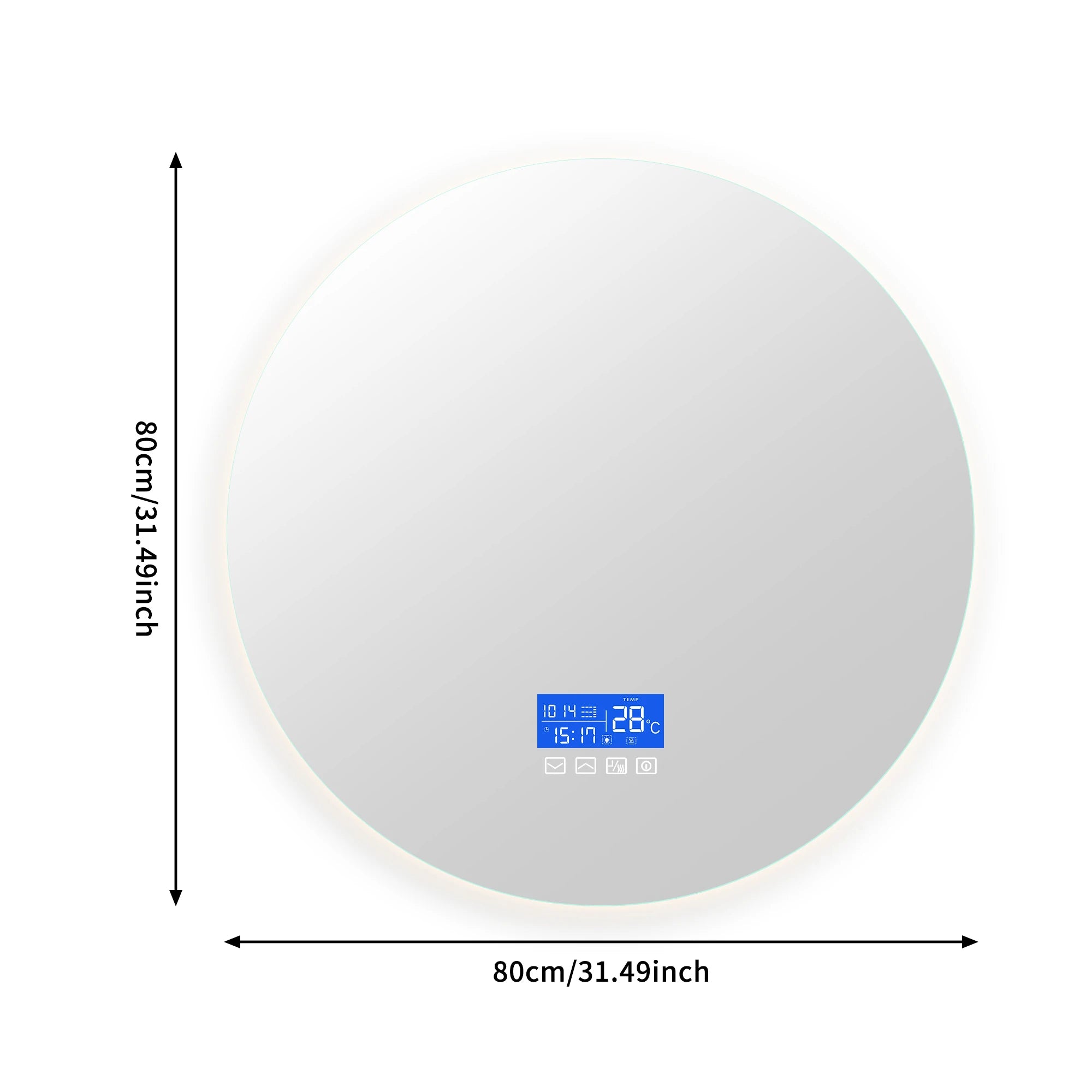 80×80cm LED Round Mirror with 3 Light Colours Adjustable, with Touch Switch, with Anti-Fog and Temperature Display Function