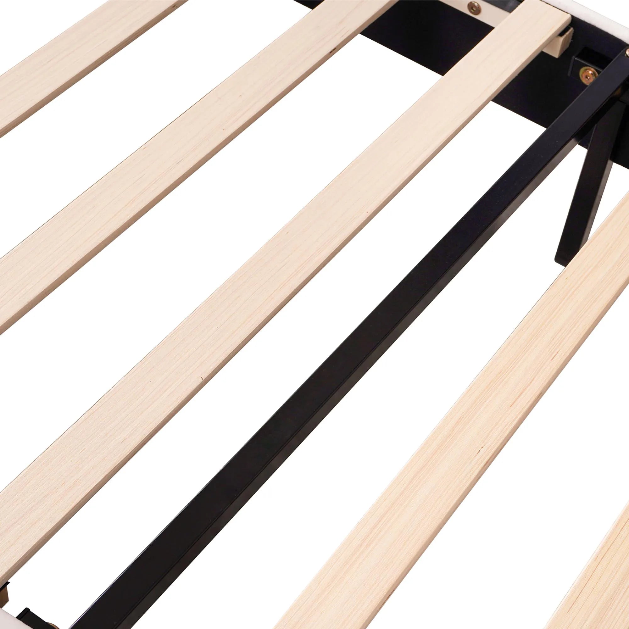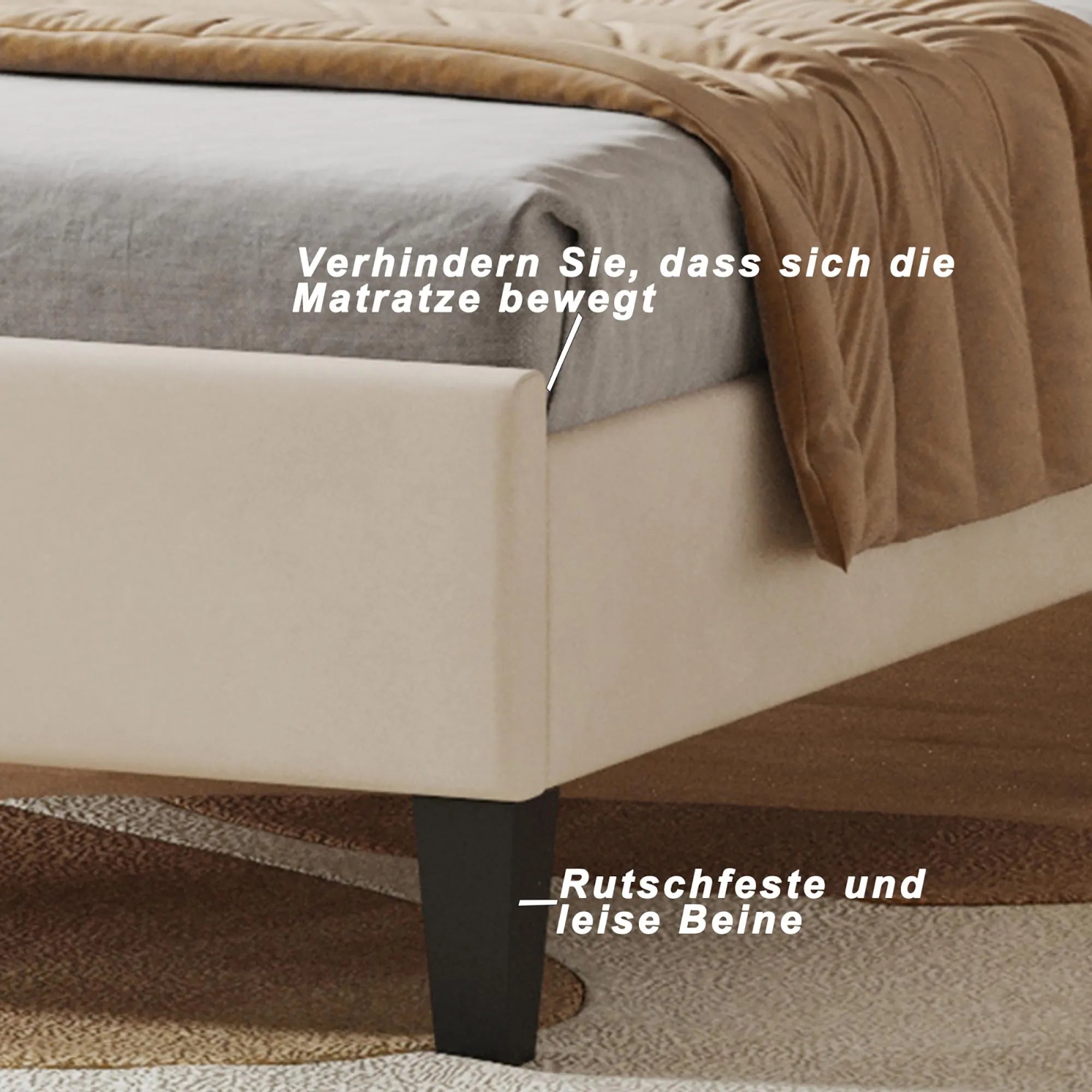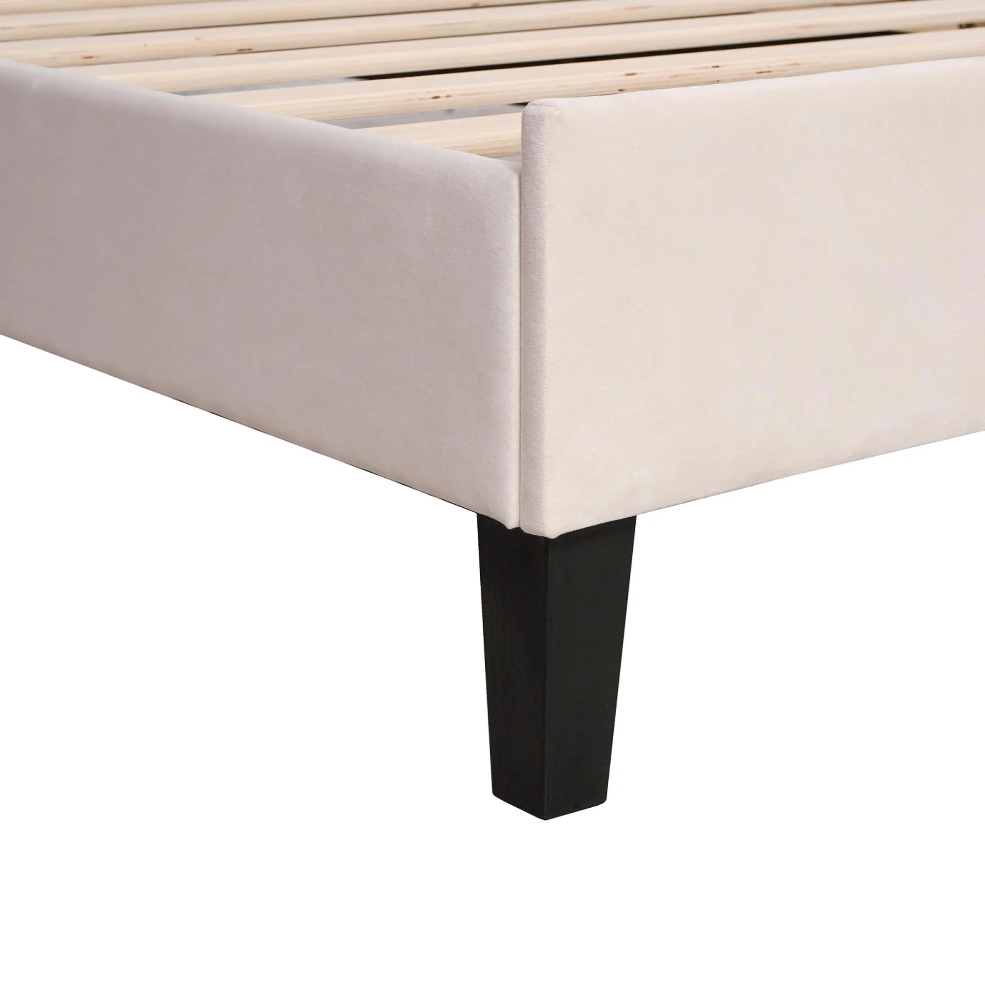 90 x 200 cm Single Bed for Teenagers and Adult , Beige Velvet Fabric with Flower-shaped Headboard and Slatted Frame